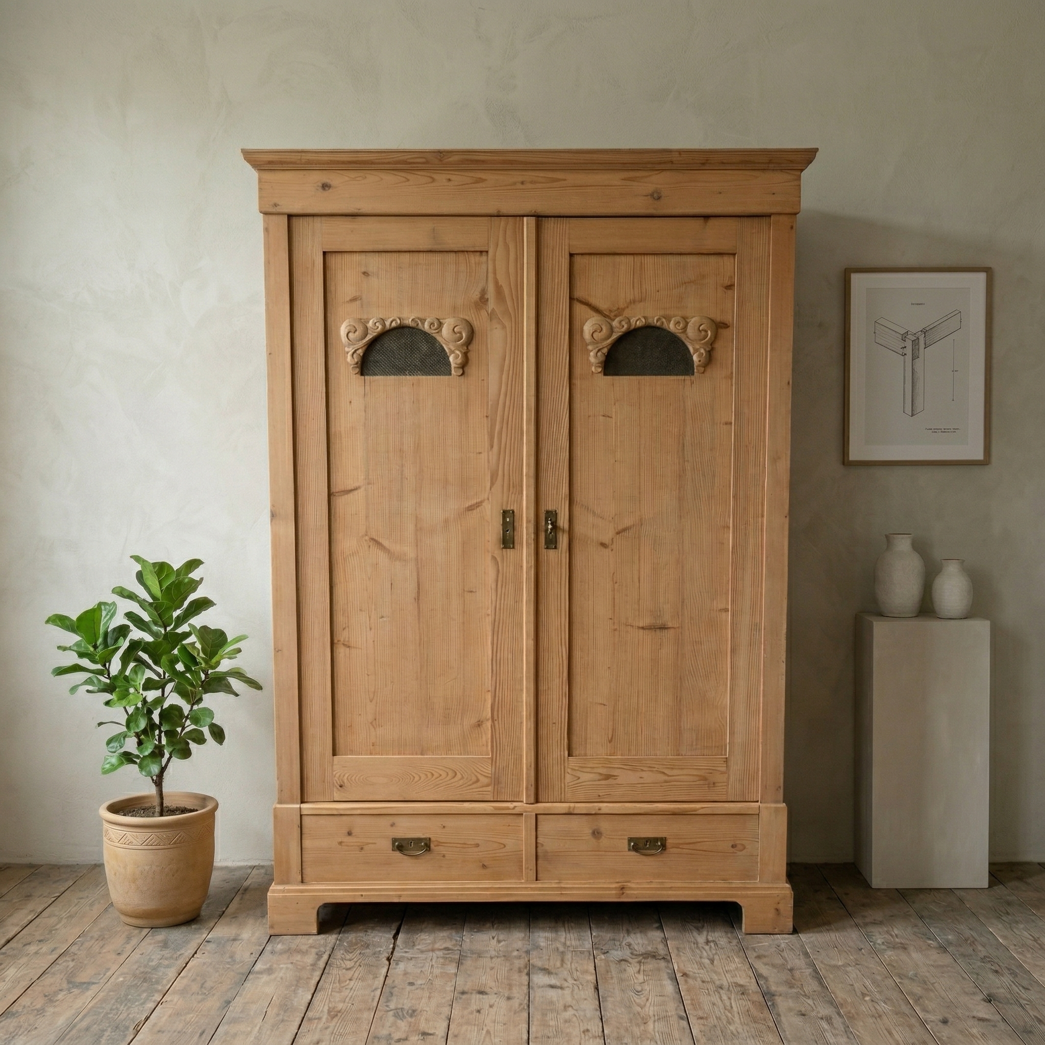 Kast Kledingkast Jugendstil 1900 Grenen