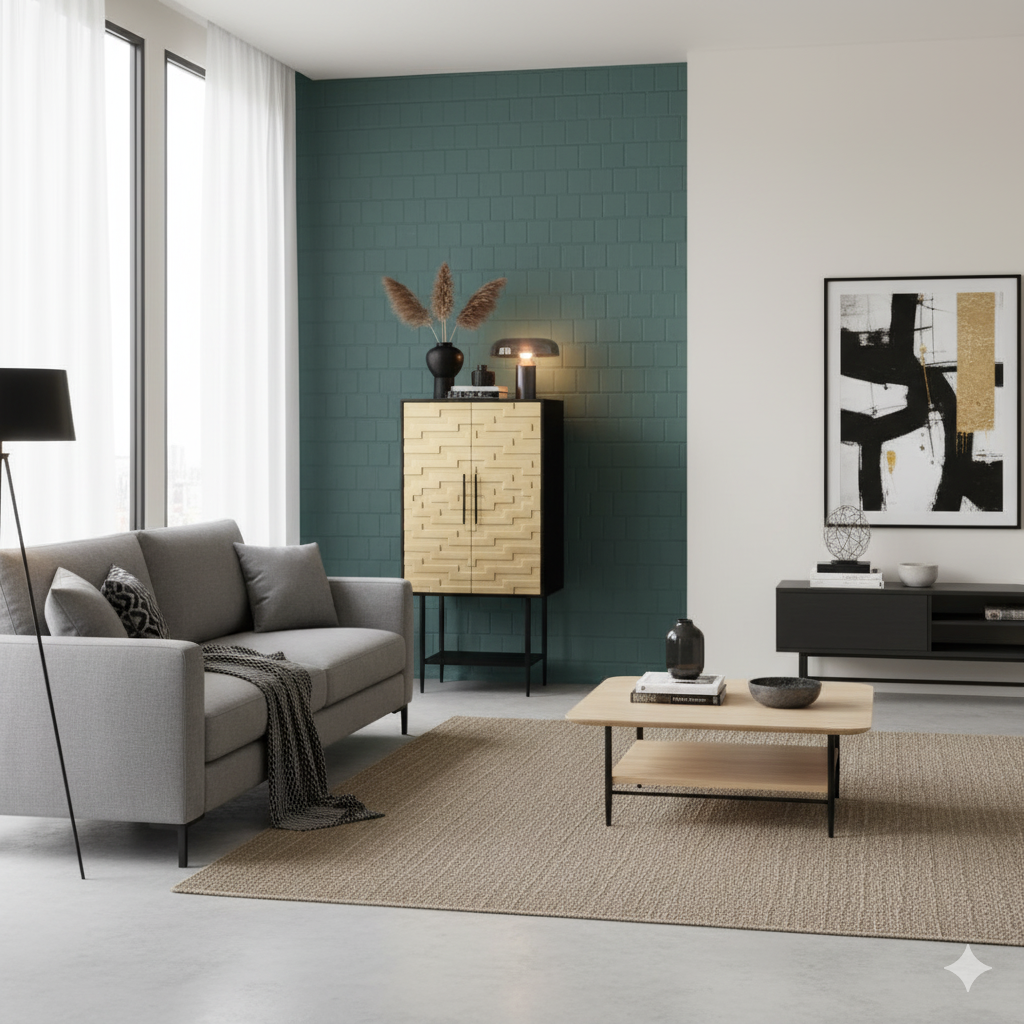 Dit unieke ontwerp maakt de kast tot een echte blikvanger in elke kamer. De combinatie van de sterke contrasten van goud en zwart en de moderne, abstracte vormentaal geeft hem een eigentijdse en tegelijkertijd luxueuze uitstraling. Of het nu in de woonkamer, eetkamer of hal is, deze kast biedt niet alleen stijlvolle opbergruimte, maar is ook een kunstwerk op zich.