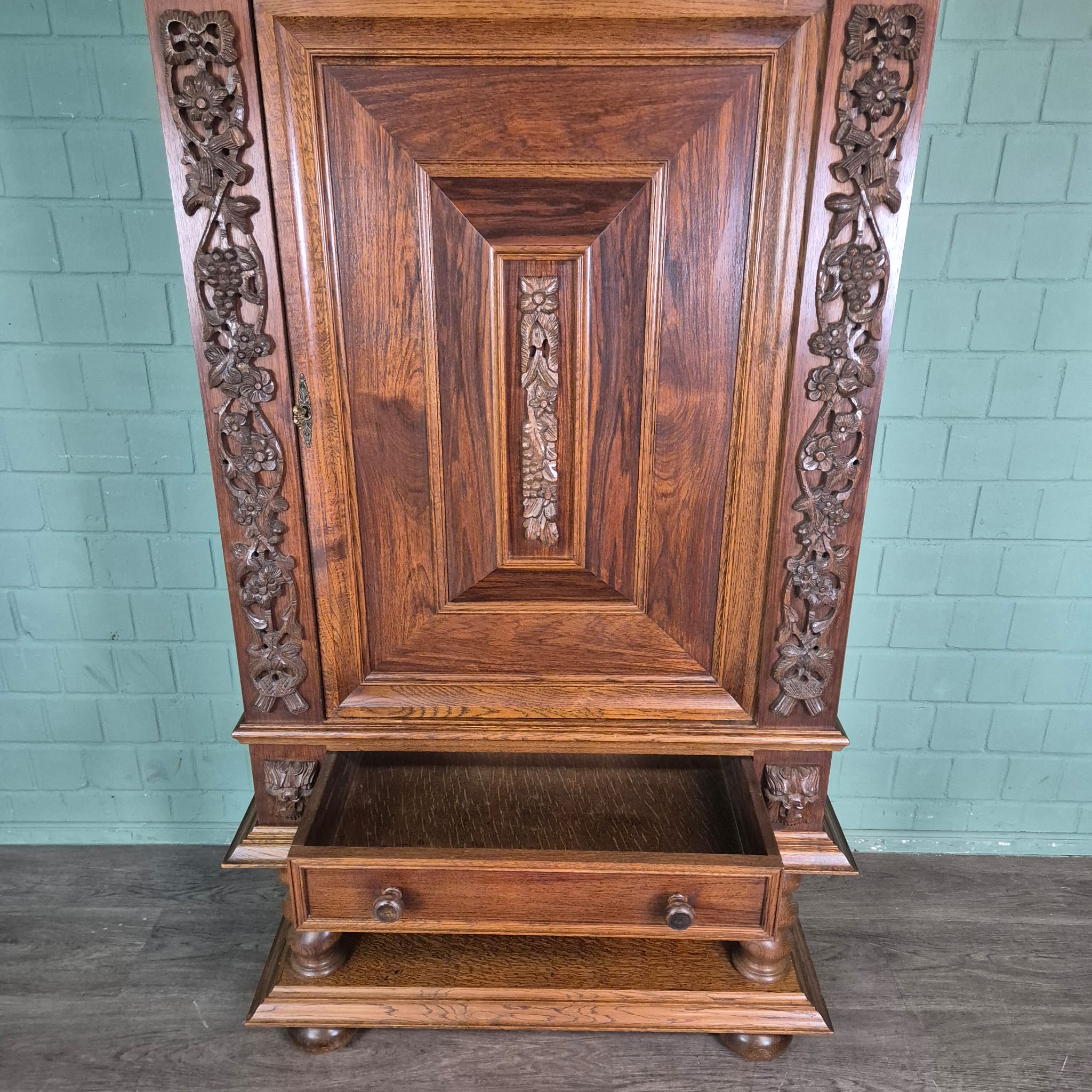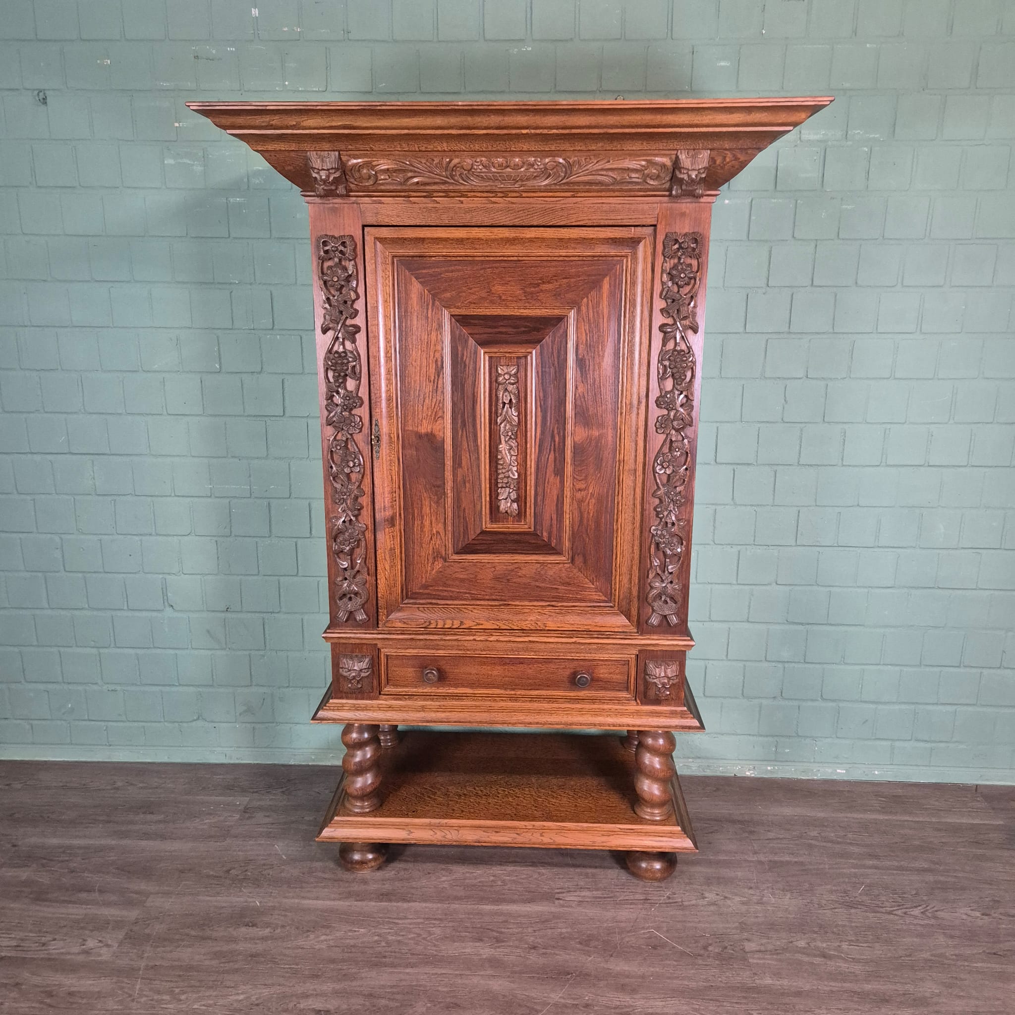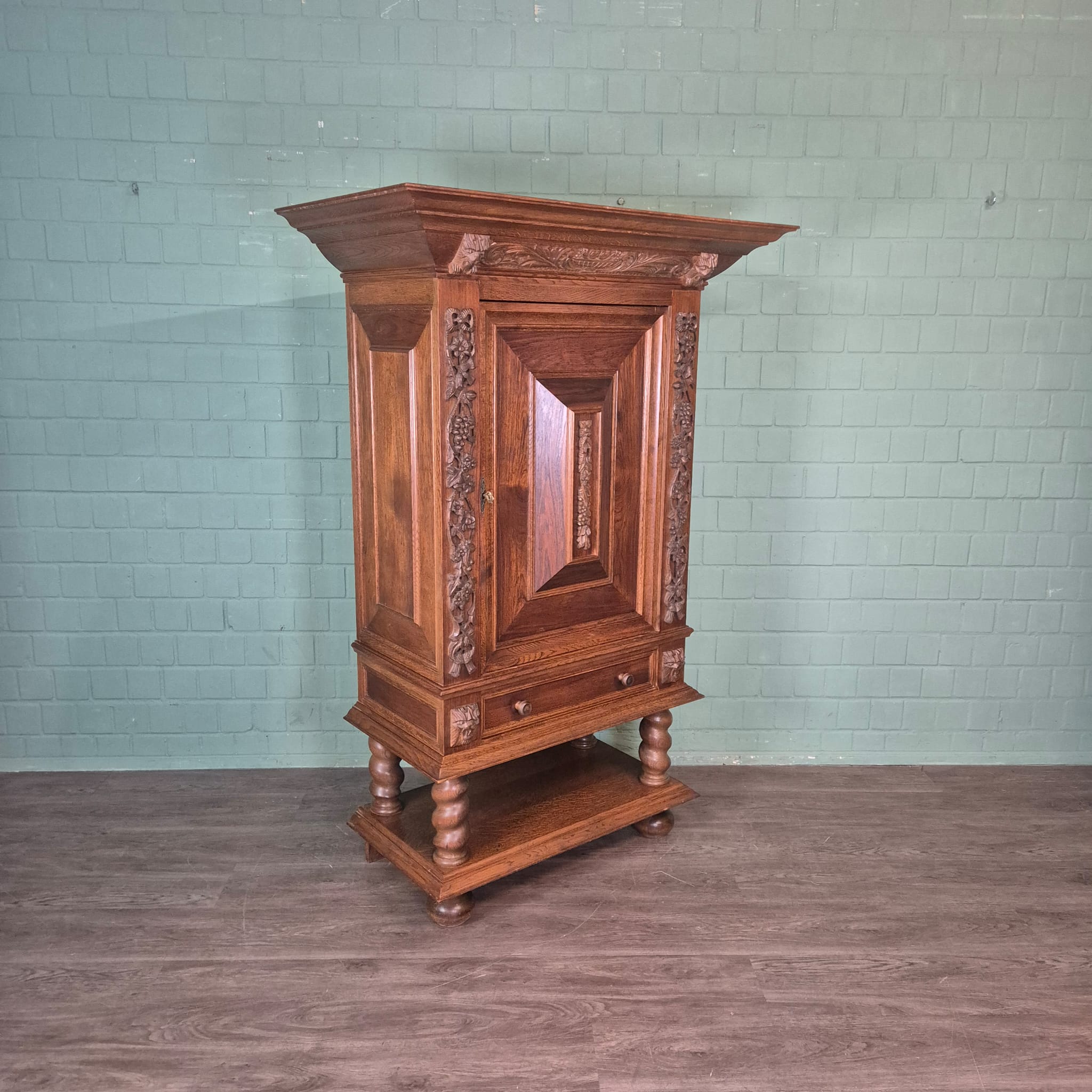 Originele neo-barok kast gemaakt van massief eiken (gelakt). De kast is in een zeer goede staat en heeft minimale gebruikssporen.