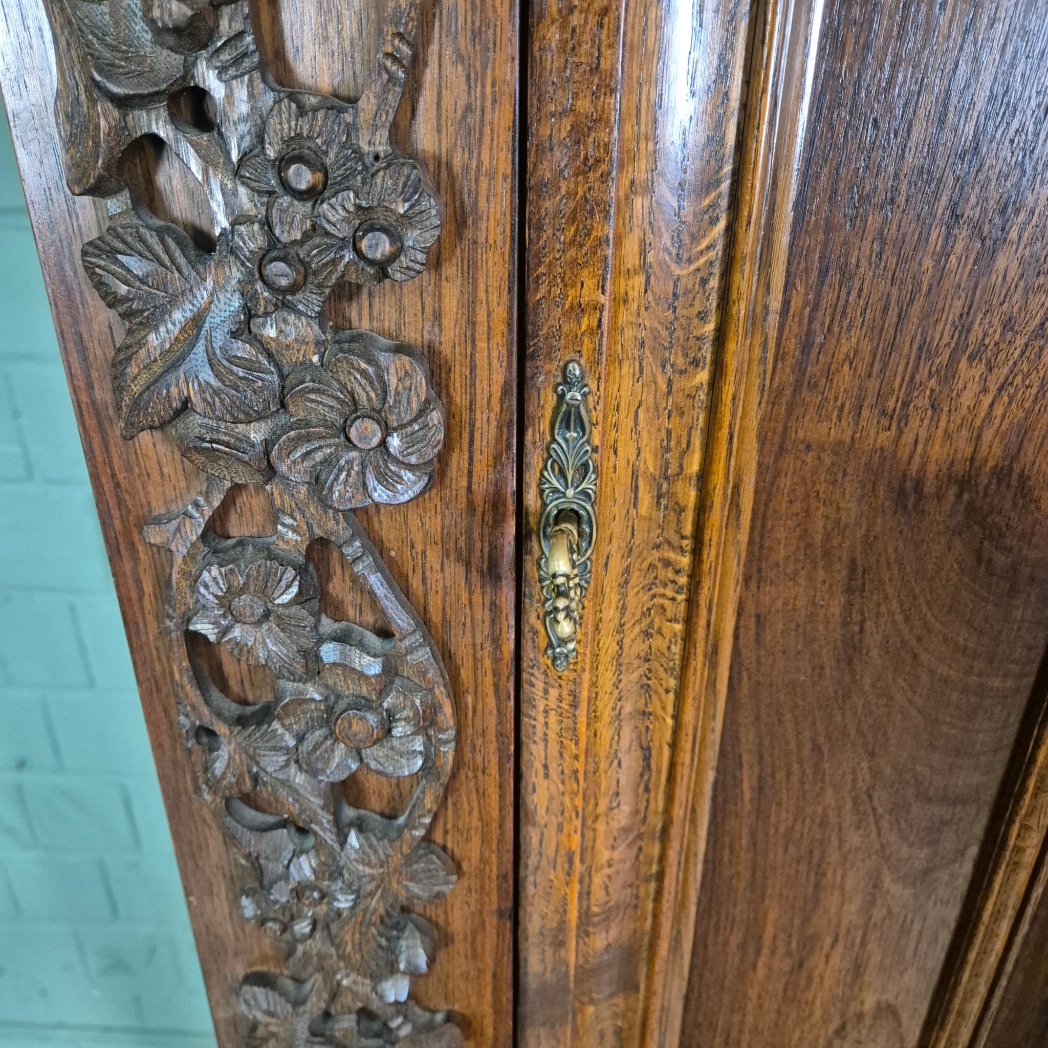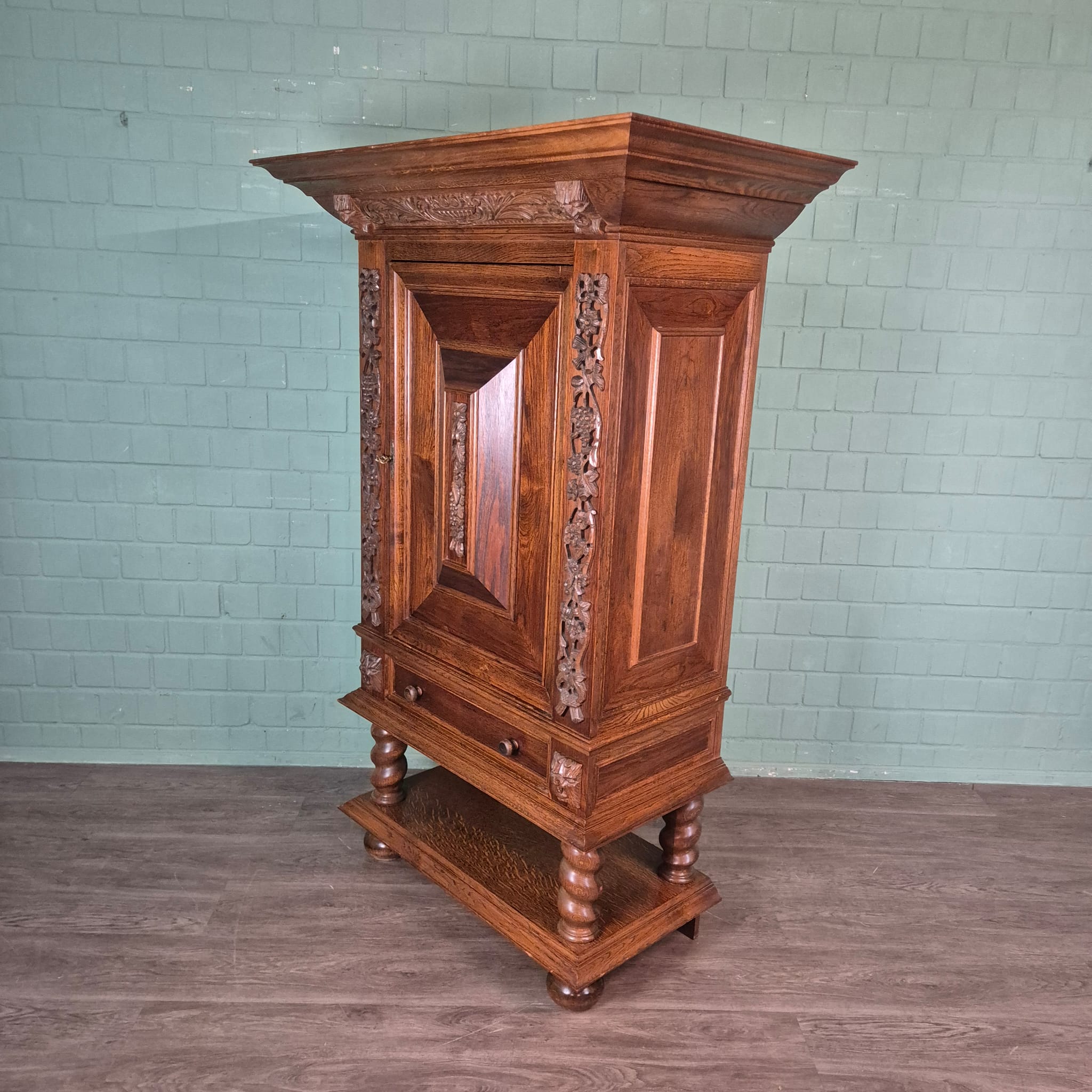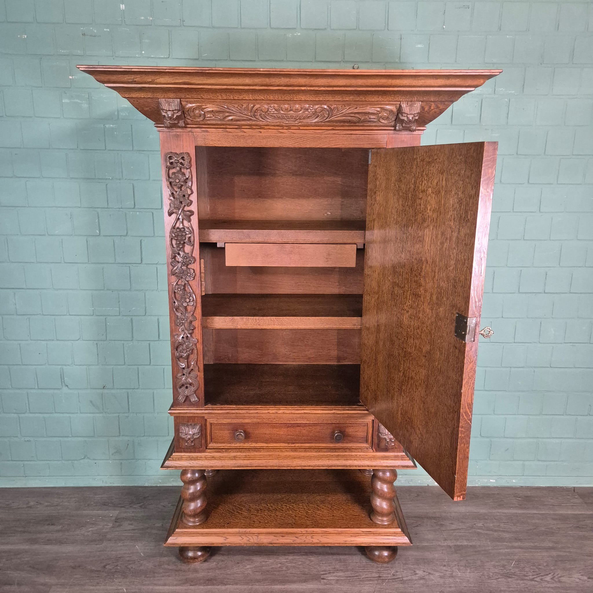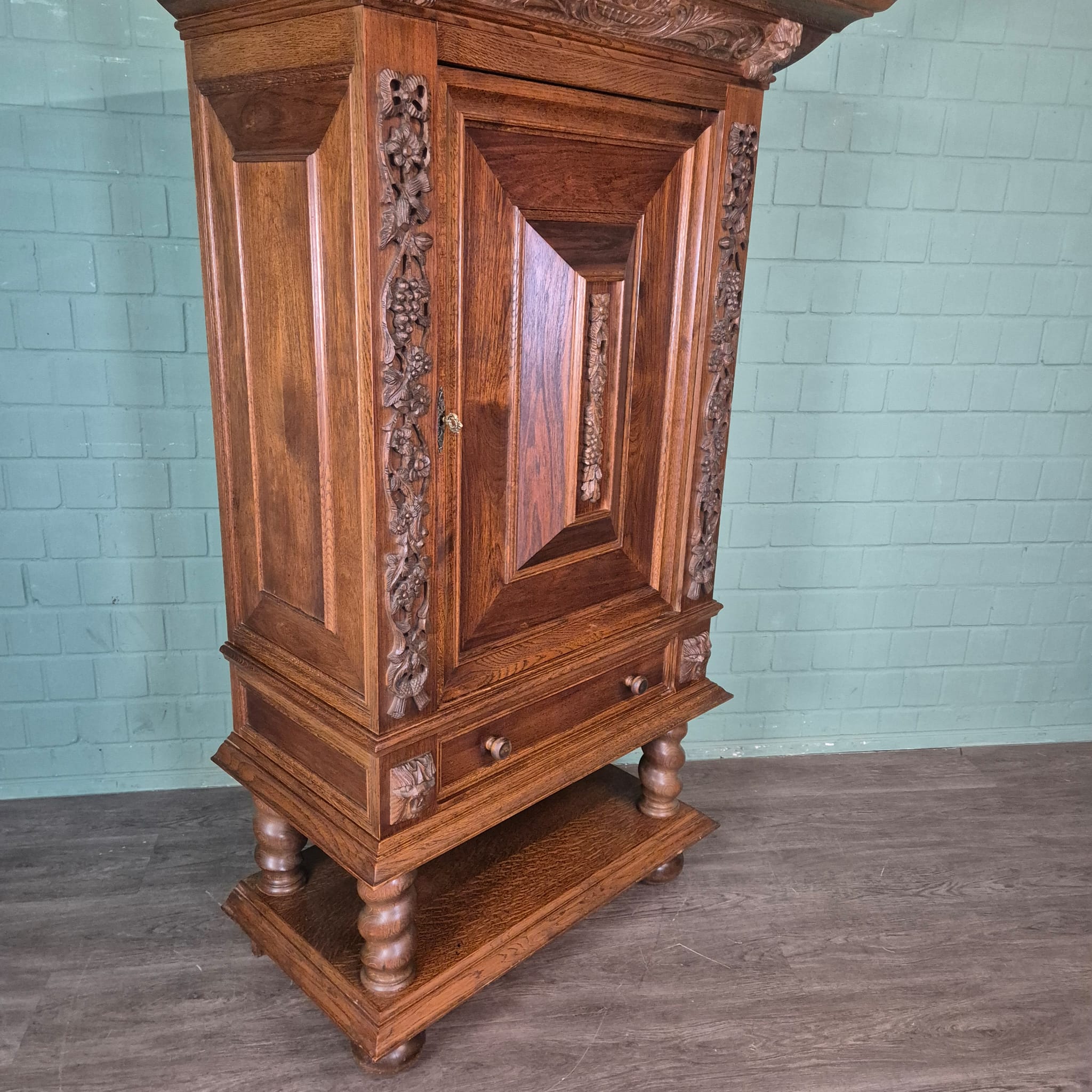 Originele neo-barok kast gemaakt van massief eiken (gelakt). De kast is in een zeer goede staat en heeft minimale gebruikssporen.