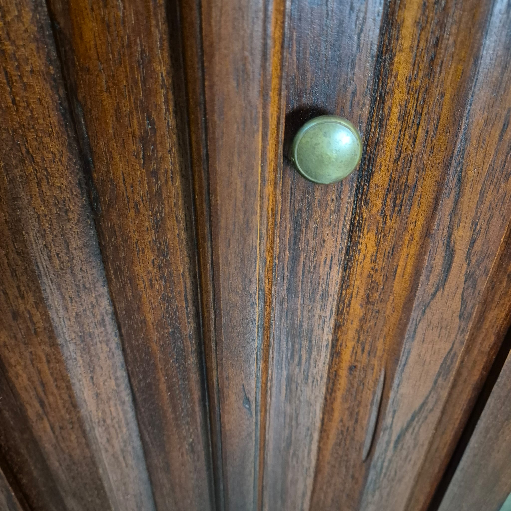 Elegant ontwerp: De diepe mahoniebeits op het teakhout geeft de kast een luxueuze en tijdloze uitstraling die naadloos past bij verschillende interieurstijlen.