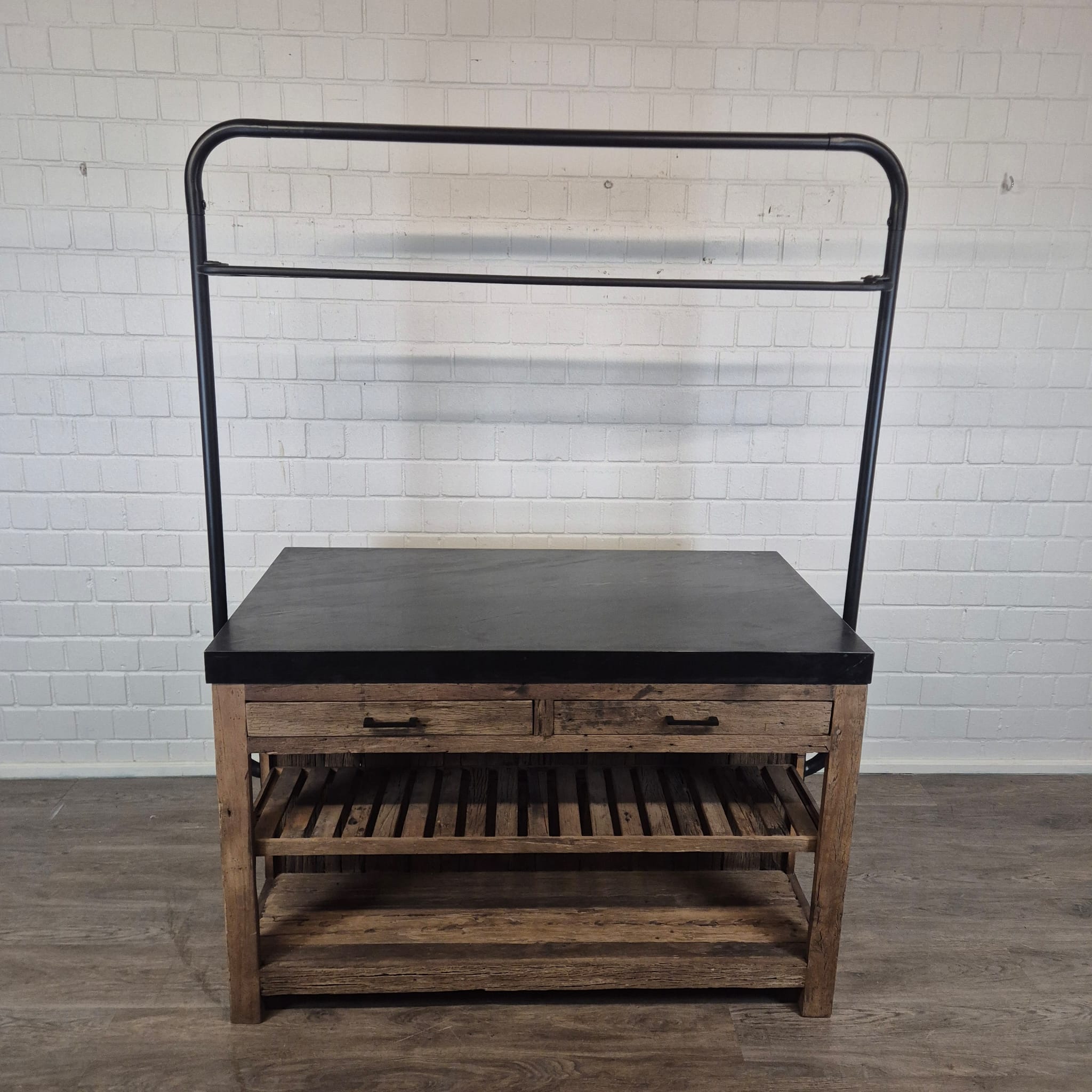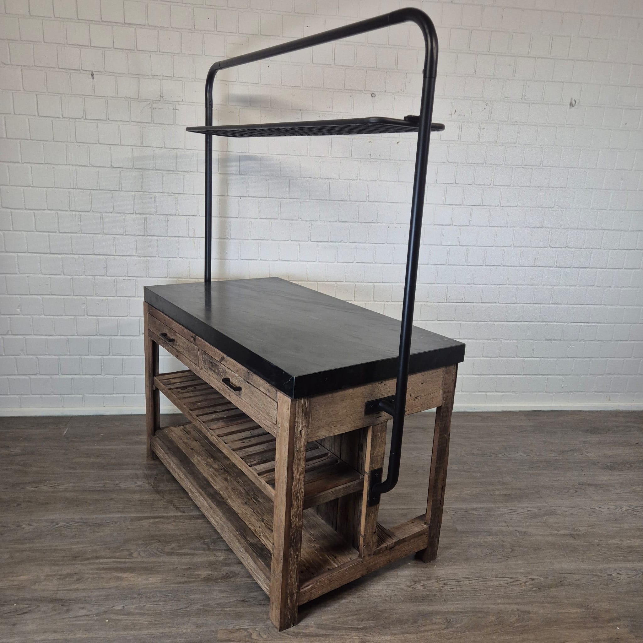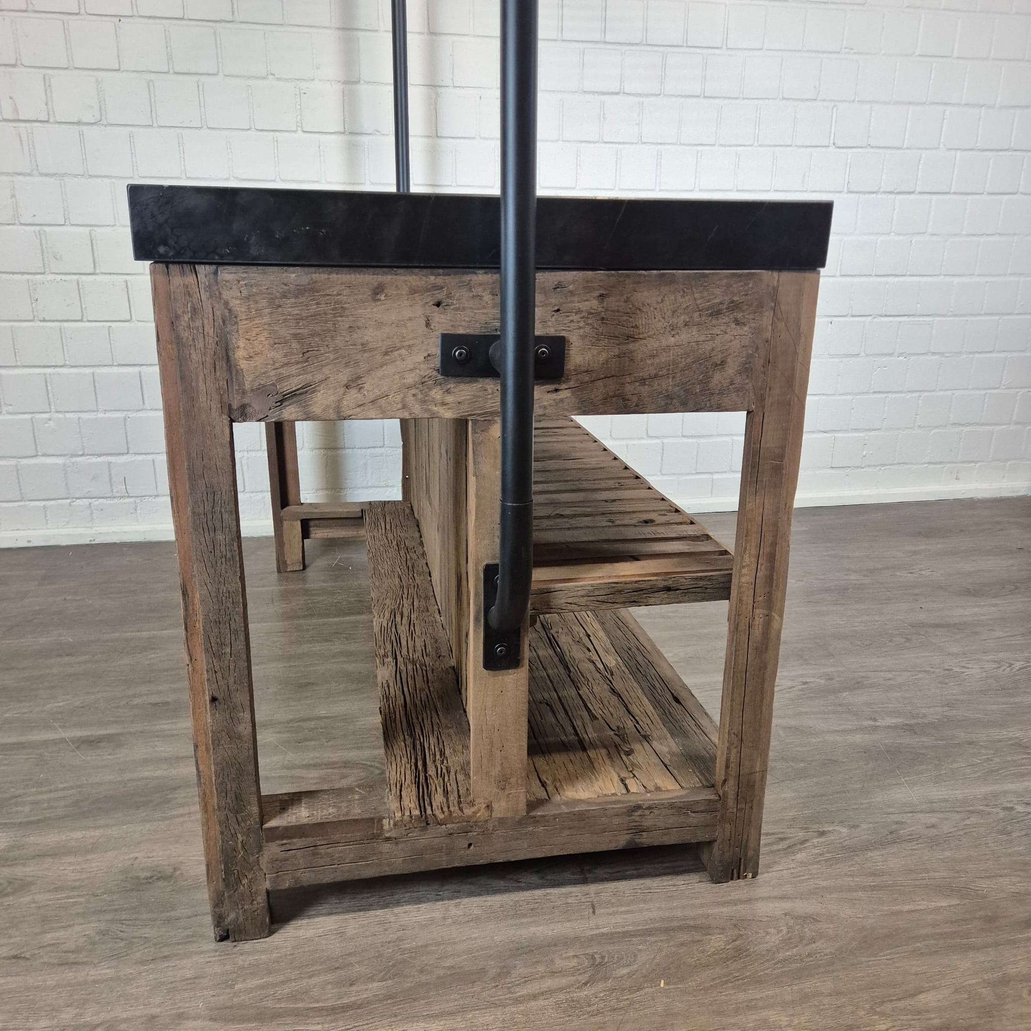 €1.763,87 Excl. btw:Dit uniek ontworpen keukeneiland, vervaardigd uit massief teakhout, dankt zijn bijzondere aantrekkingskracht aan de gebruikte materialen en de natuurlijke onregelmatigheden in het hout. Deze variaties zijn inherent aan het fijne hout zelf, met zijn diverse nerfpatronen, waardoor dit meubelstuk een onderscheidend karakter krijgt en werkelijk uniek is. De afwerking en kleur van het hout dragen aanzienlijk bij aan de visuele aantrekkingskracht van dit meubelstuk, dat zowel decoratieve mogelijkheden als ruime opbergruimte biedt.