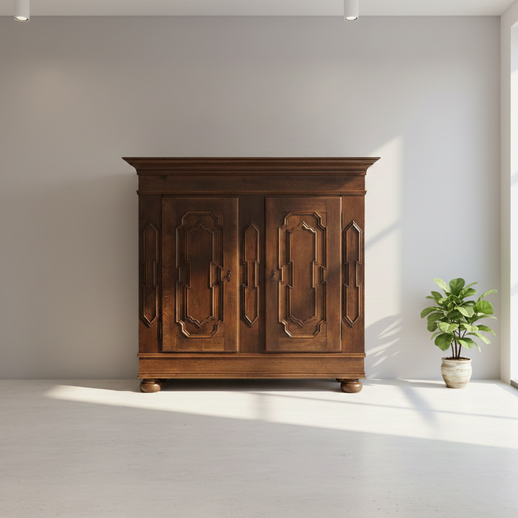 Gerestaureerde barok kledingkast gemaakt van massief eiken (gewaxt) uit ca. 1770. De kledingkast is in een zeer goede staat en heeft minimale gebruikssporen. De kast is in een zeer goede staat en heeft minimale gebruikssporen. Demontabel (8-delig).