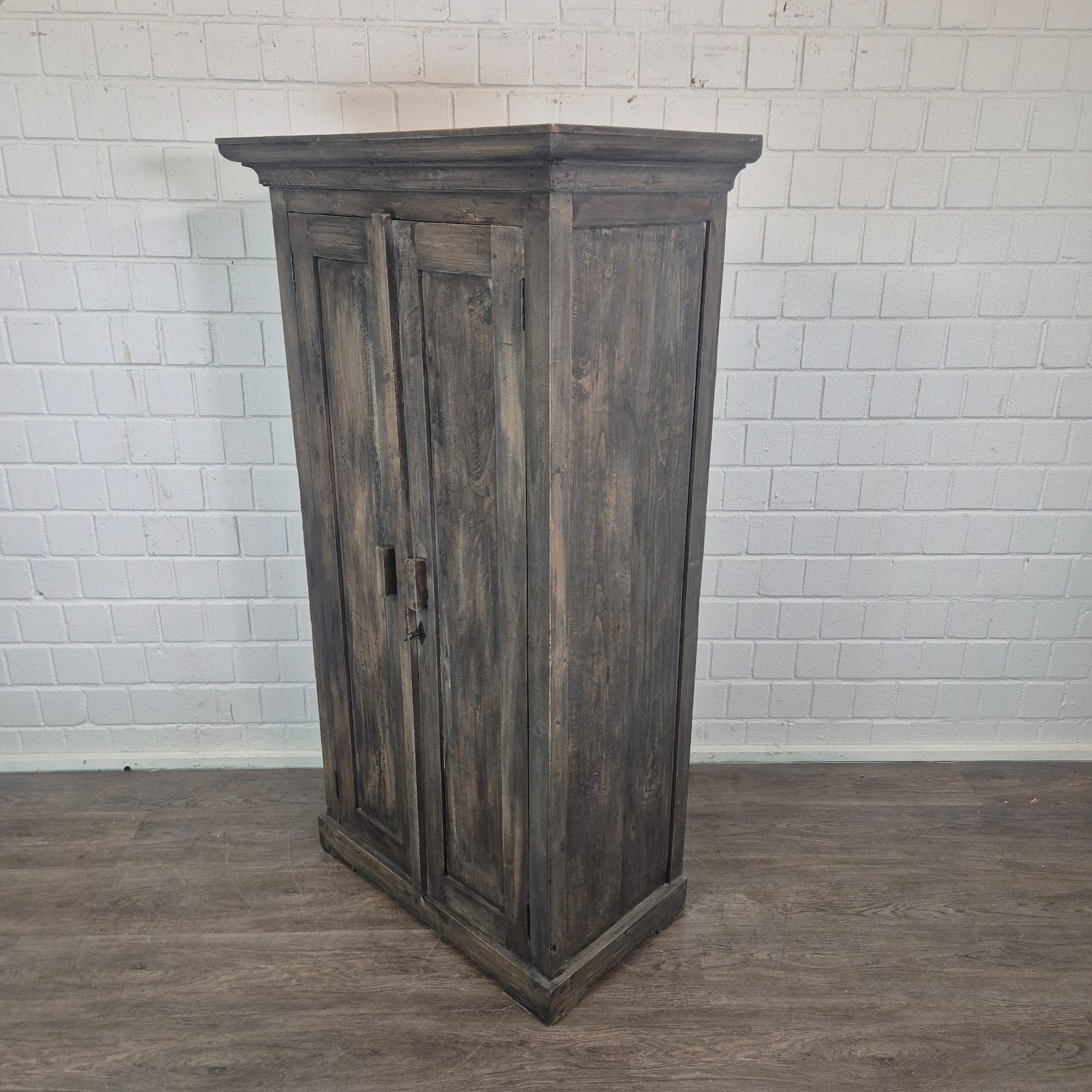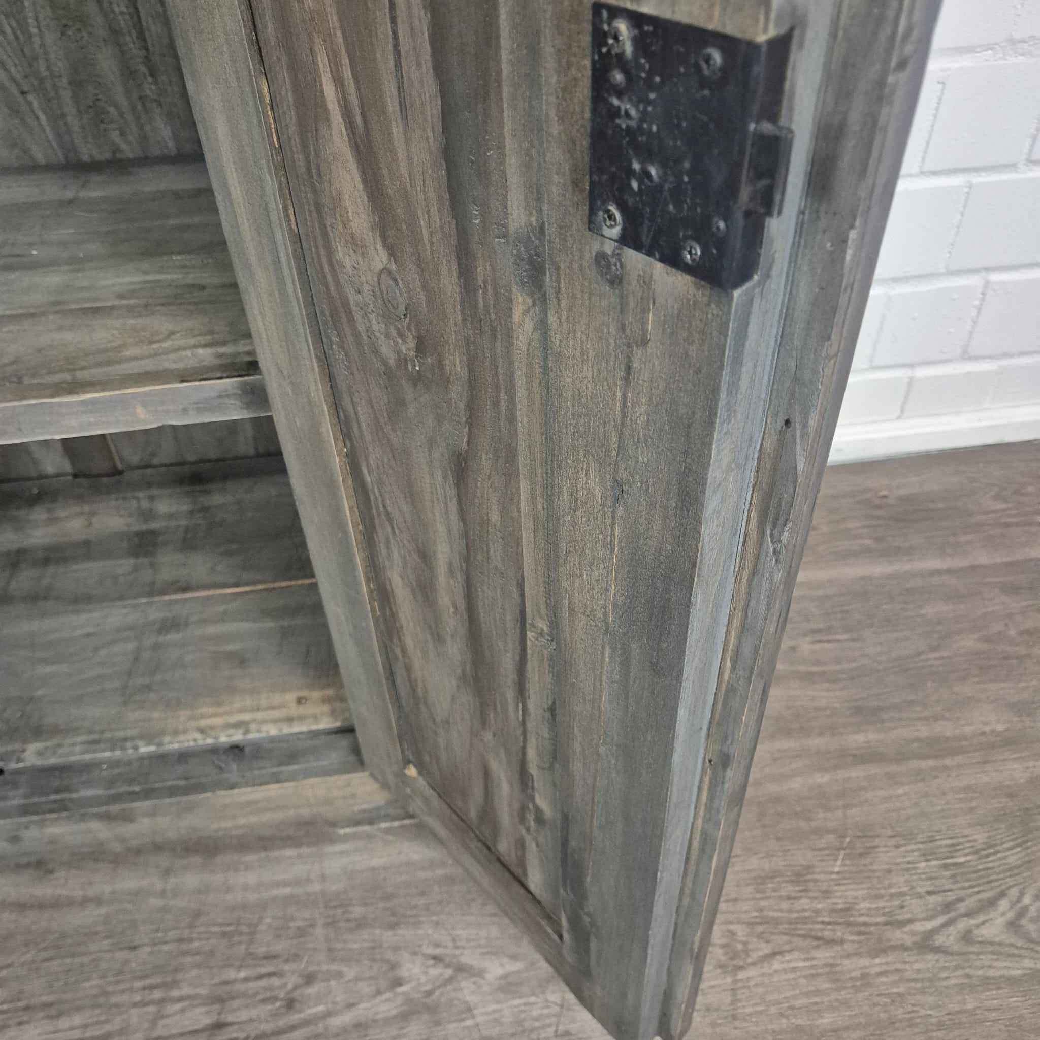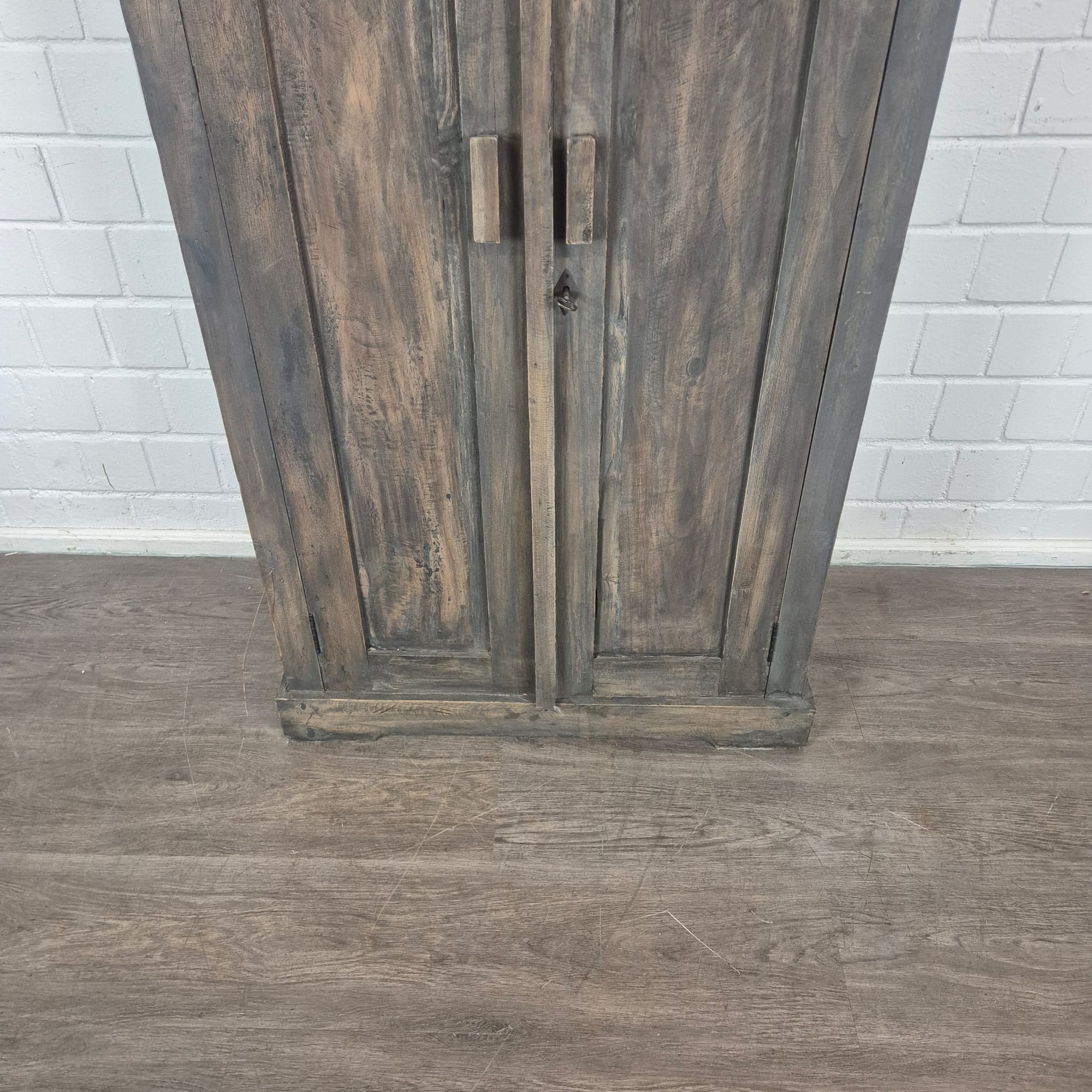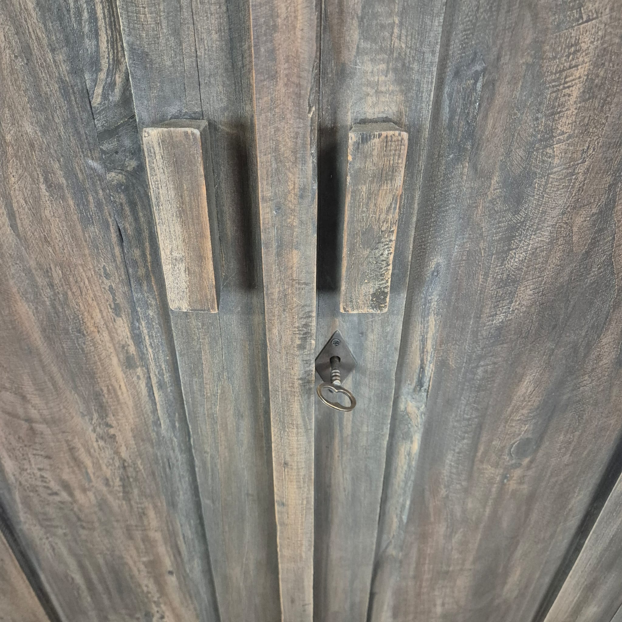 Praktische opbergruimte: Achter de twee deuren met hun opvallende houten handgrepen bevinden zich drie planken, die voldoende ruimte bieden voor uw spullen – of het nu gaat om kleding, servies of boeken.