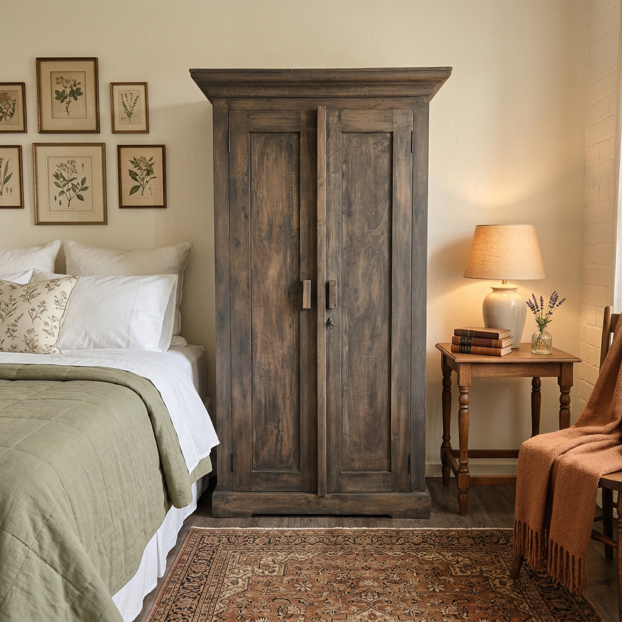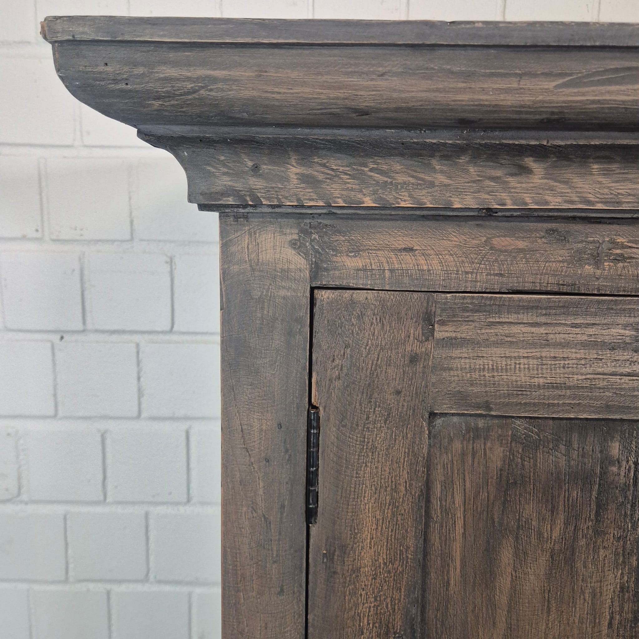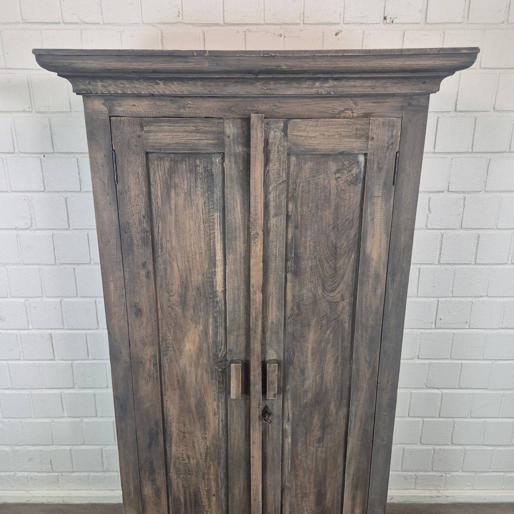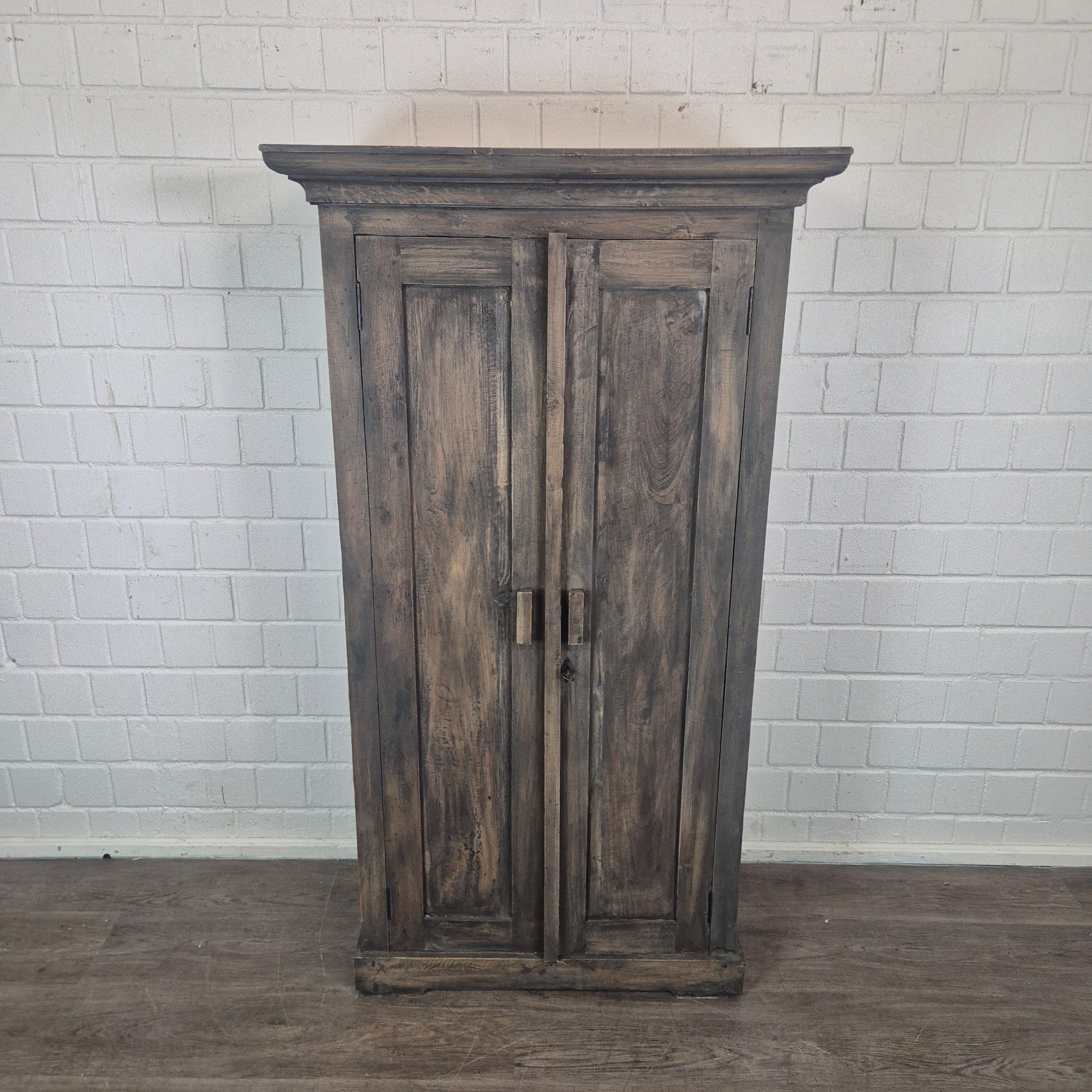 Praktische opbergruimte: Achter de twee deuren met hun opvallende houten handgrepen bevinden zich drie planken, die voldoende ruimte bieden voor uw spullen – of het nu gaat om kleding, servies of boeken.
