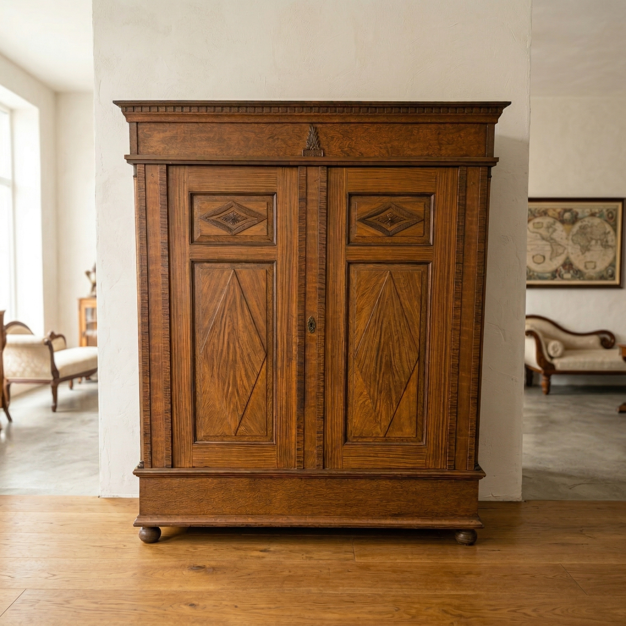 Kledingkast Linnenkast Neo-renaissance 1870 Eiken