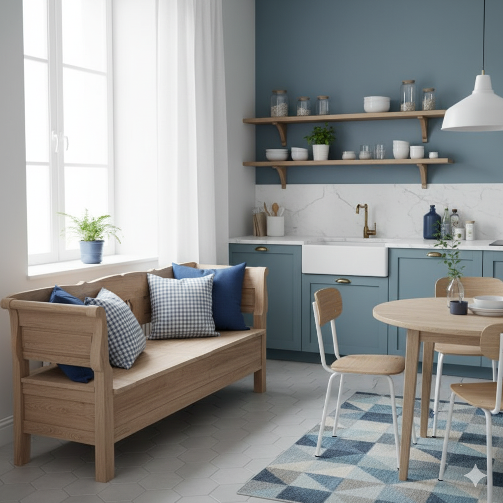 Deze rustieke bank van gemaakt massief teakhout is een waar juweeltje in een charmante landelijke stijl. Het lichte, onbehandelde teakhout geeft hem een natuurlijke en warme uitstraling. De zitting klapt omhoog en onthult een ruim opbergvak dat ideale opbergruimte biedt voor kussens, dekens of andere spullen – een perfecte combinatie van zitcomfort en praktische opbergruimte.
