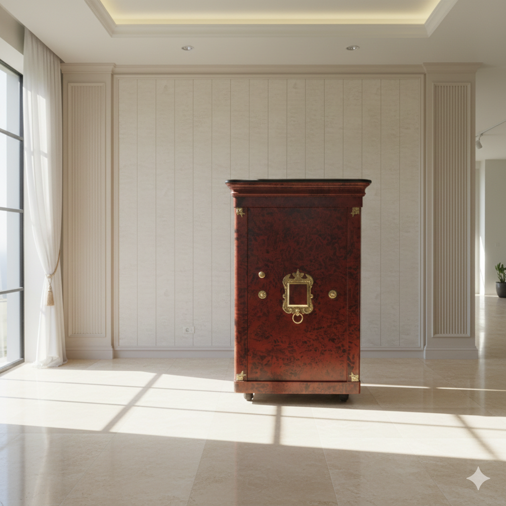 Originele Gründerzeit kluis met houten blad uit ca. 1880. Tresor von ca. 1880. De kluis is in een goede staat en heeft lichte gebruikssporen. Gewicht ca. 800 Kilogram.