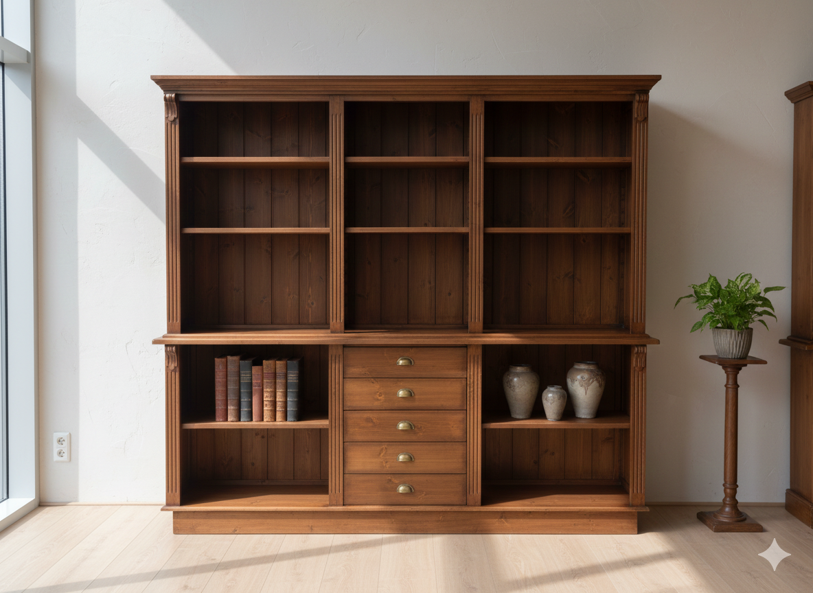 Der Ladenschrank Modell Yvonne Marrón aus Massivholz besticht durch seine stilvolle Eleganz und der aufwendigen Verarbeitung. Die Kombination von nostalgischer Optik und moderner Funktionalität ist für alle Ladeneinrichtungen sowie vielen weiteren Einsatzgebieten geeignet. Der Schrank wird komplett fertig montiert geliefert und ist somit sofort einsatzbereit.