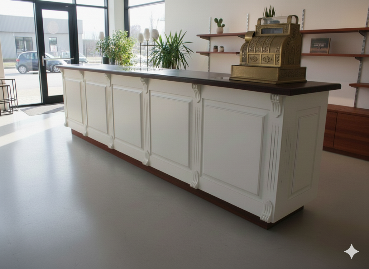 Der Verkaufstresen Modell Nediva aus Massivholz besticht durch seine stilvolle Eleganz und der aufwendigen Verarbeitung. Die Kombination von nostalgischer Optik und moderner Funktionalität ist für alle Ladeneinrichtungen sowie vielen weiteren Einsatzgebieten geeignet. Der Tresen wird komplett fertig montiert geliefert und ist somit sofort einsatzbereit.