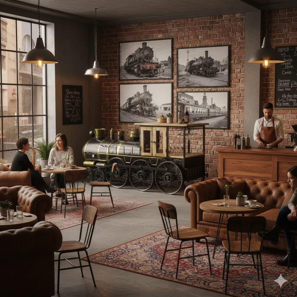 Minibar Wijnrek Stoomlocomotief Locomotief Mangohout Metaal 2.20m