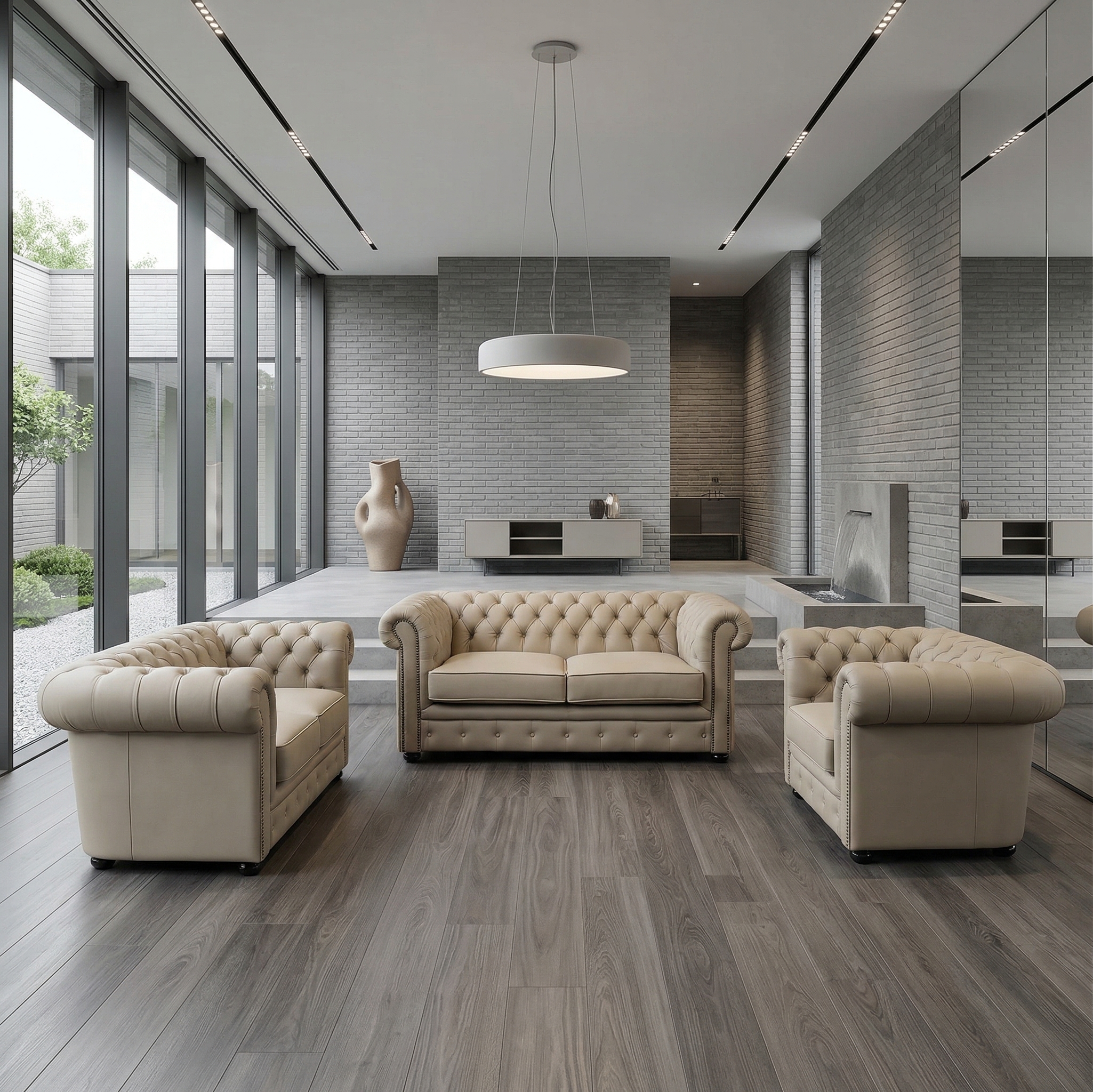 Chesterfield Bankstel PU-Leder Zand