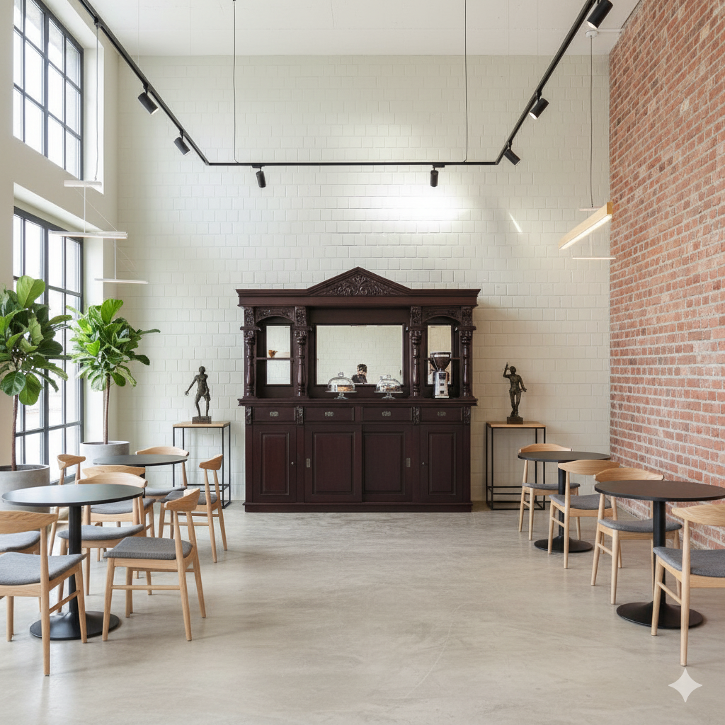 Achterkast van een empire bar gemaakt van massief mahonie. Demontabel (2-delig).