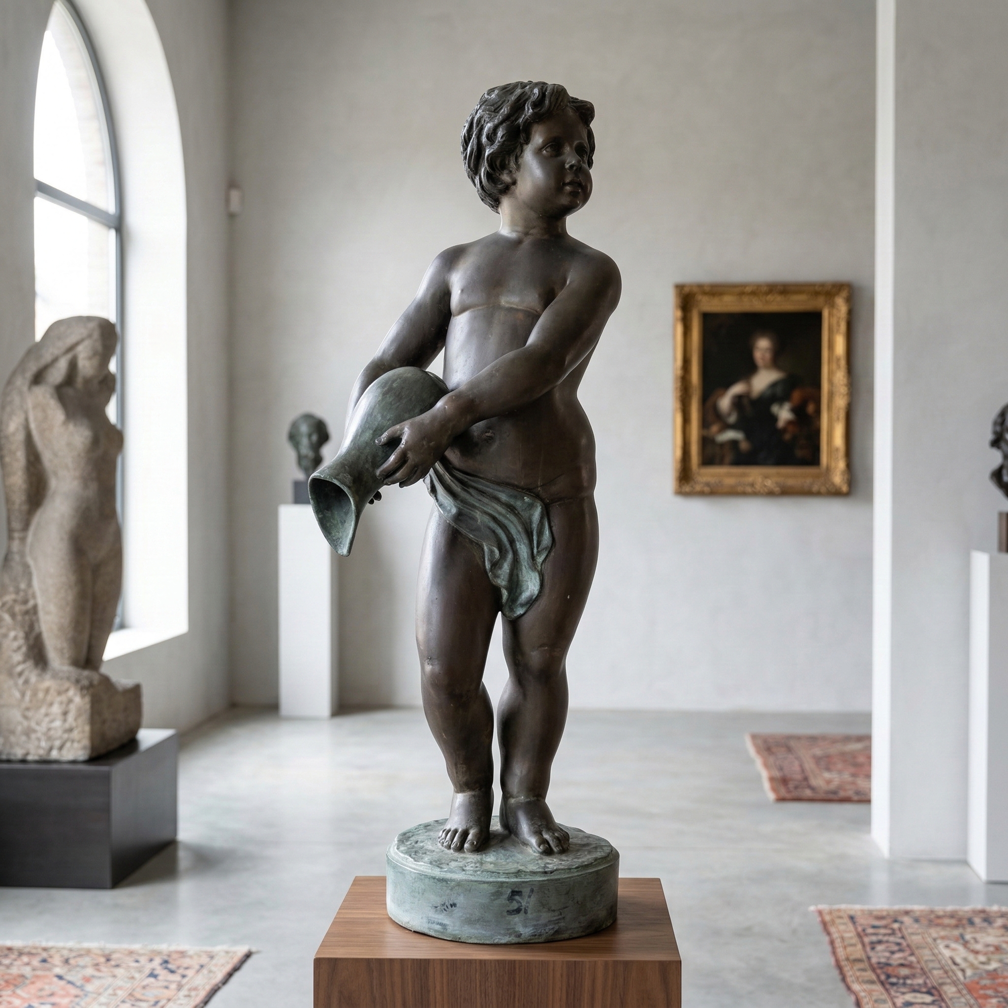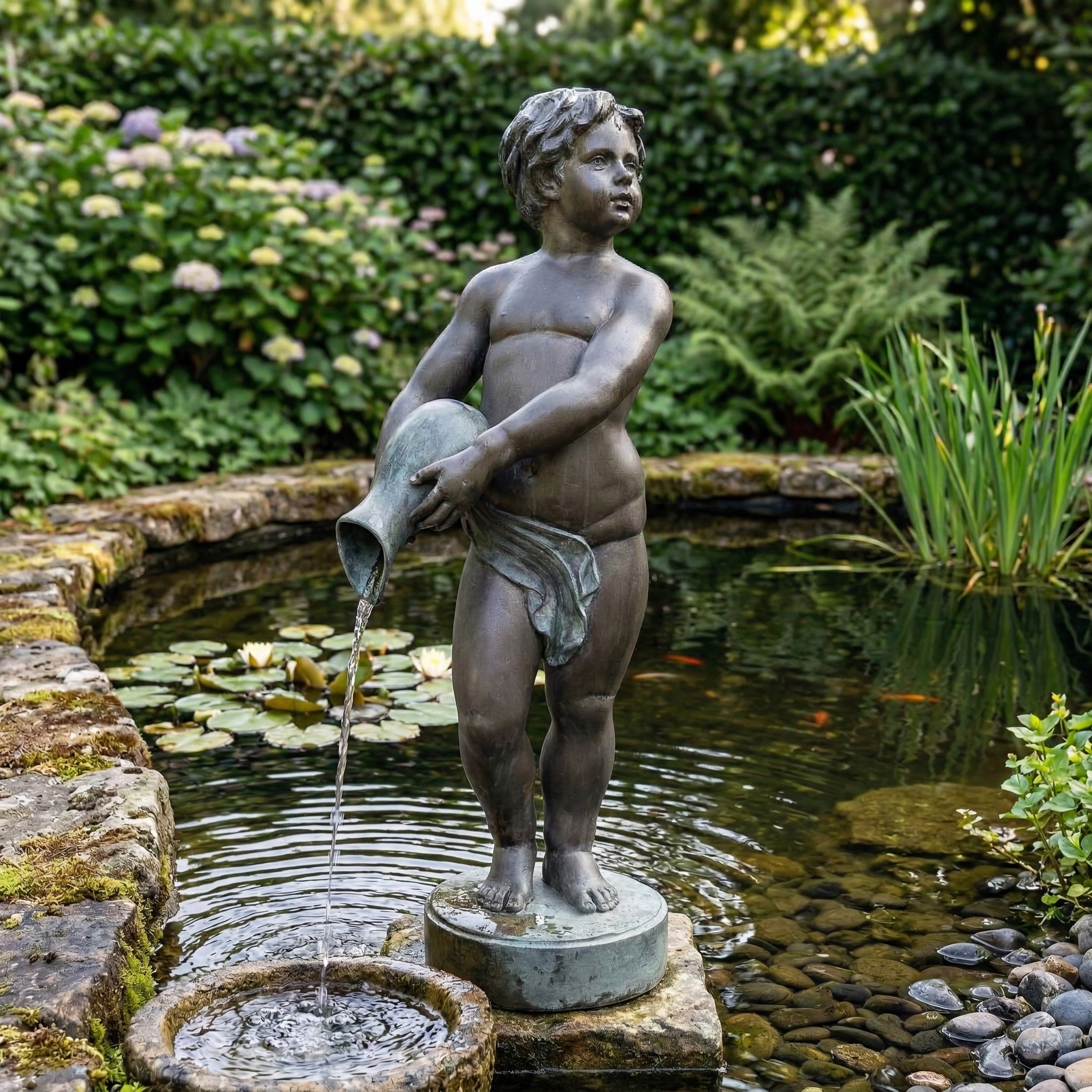 Bronzen fontein van een jongen met amfora, leeftijd onbekend.