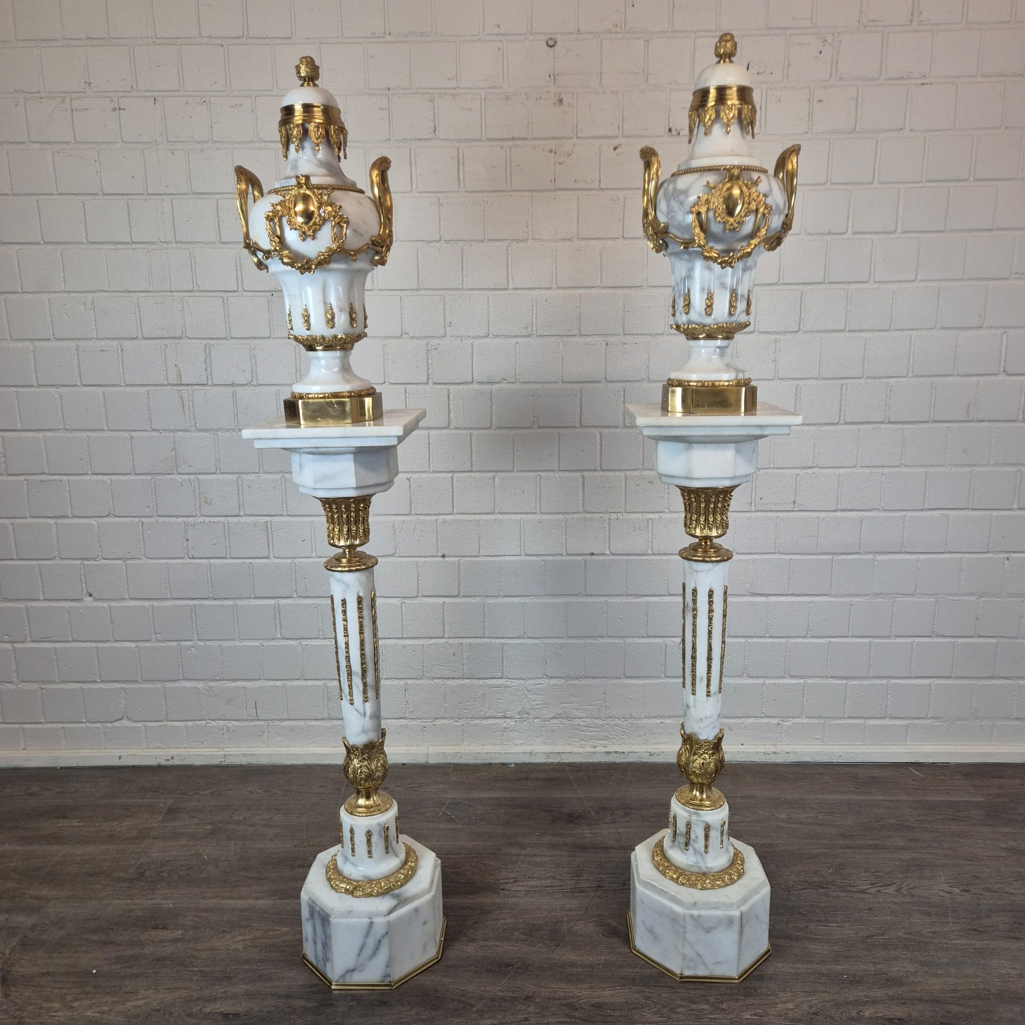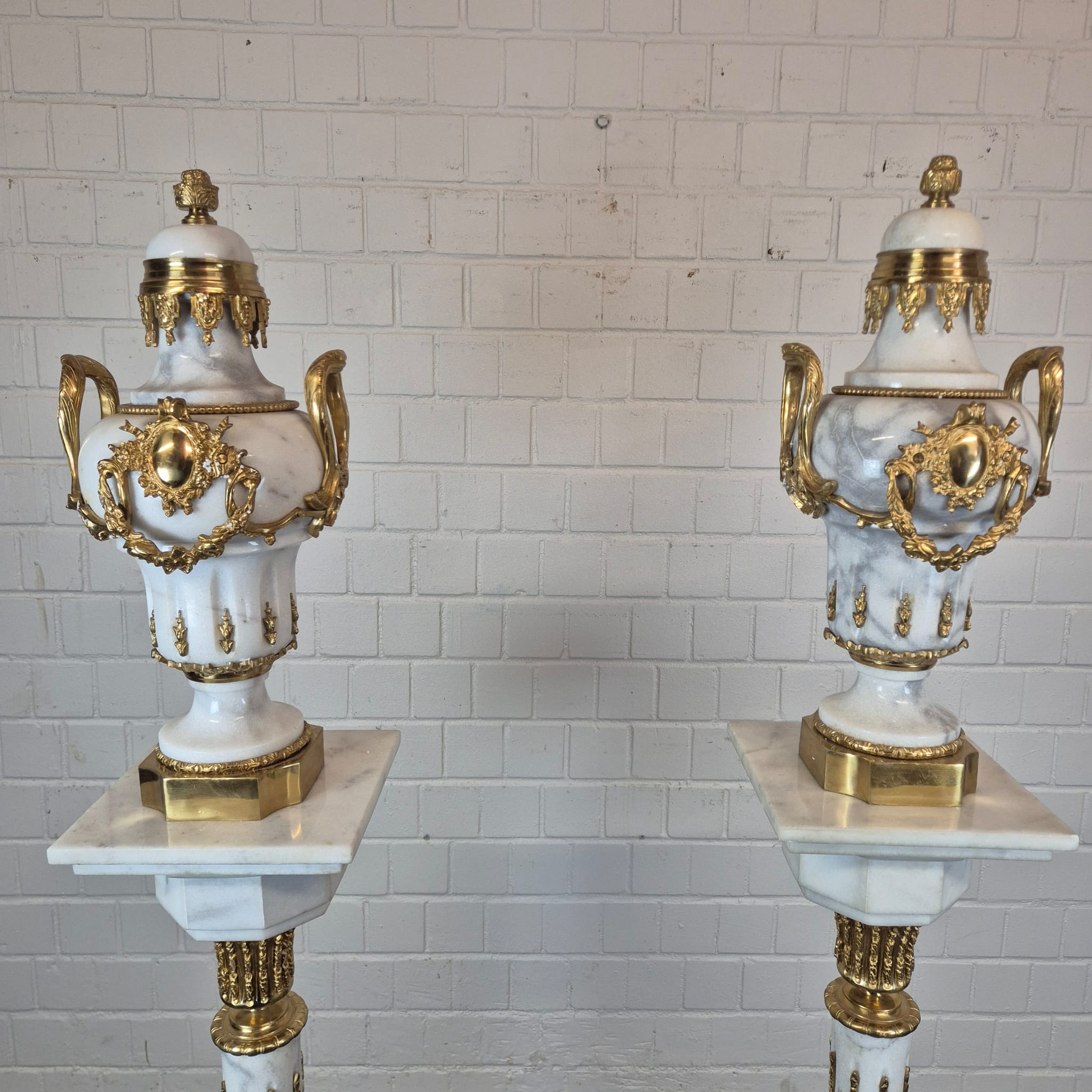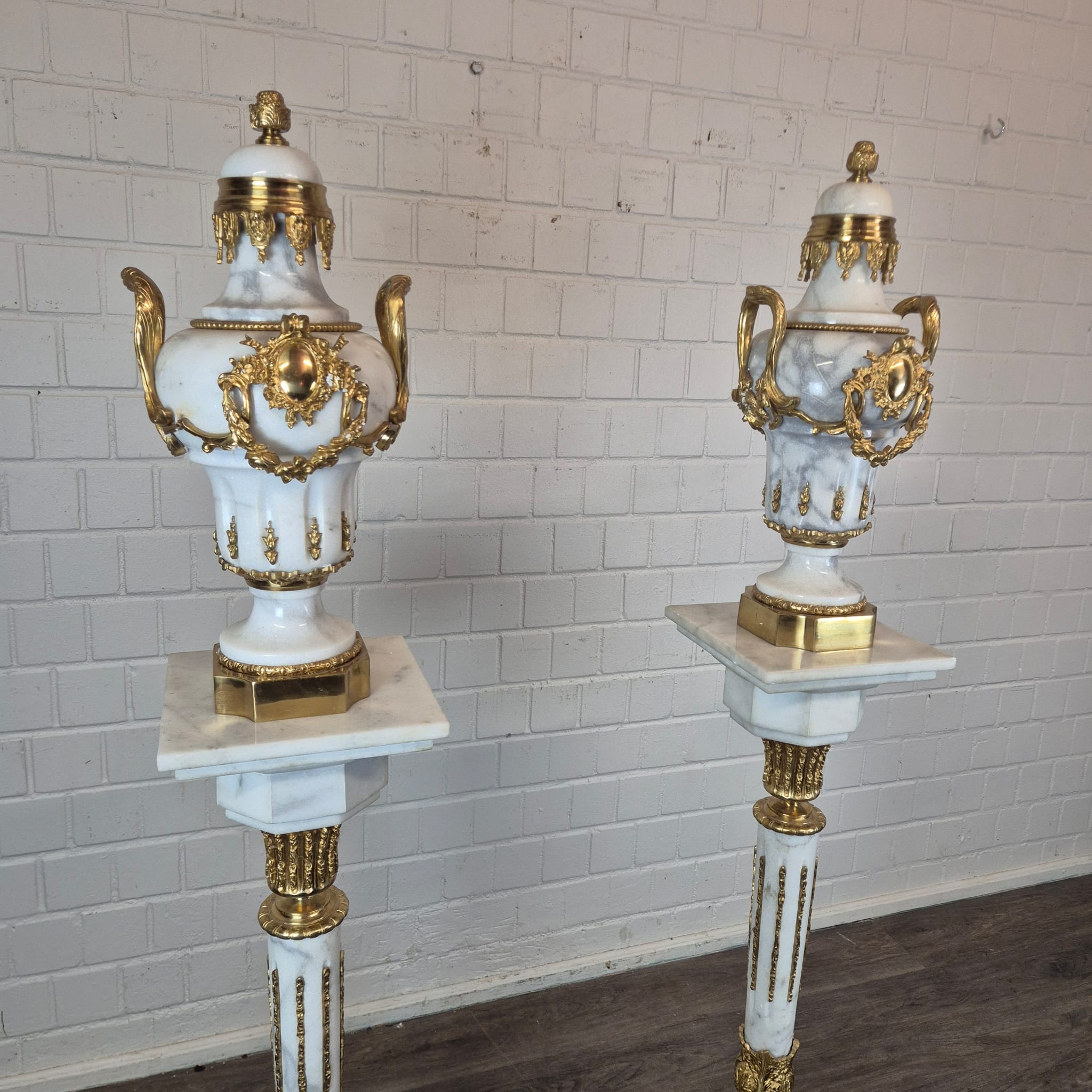 Exquisite paar monumentale siervazen op marmeren sokkels - Napoleon III-stijl - Hoogte 1,82 m