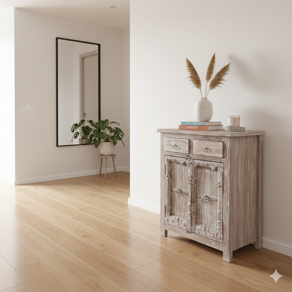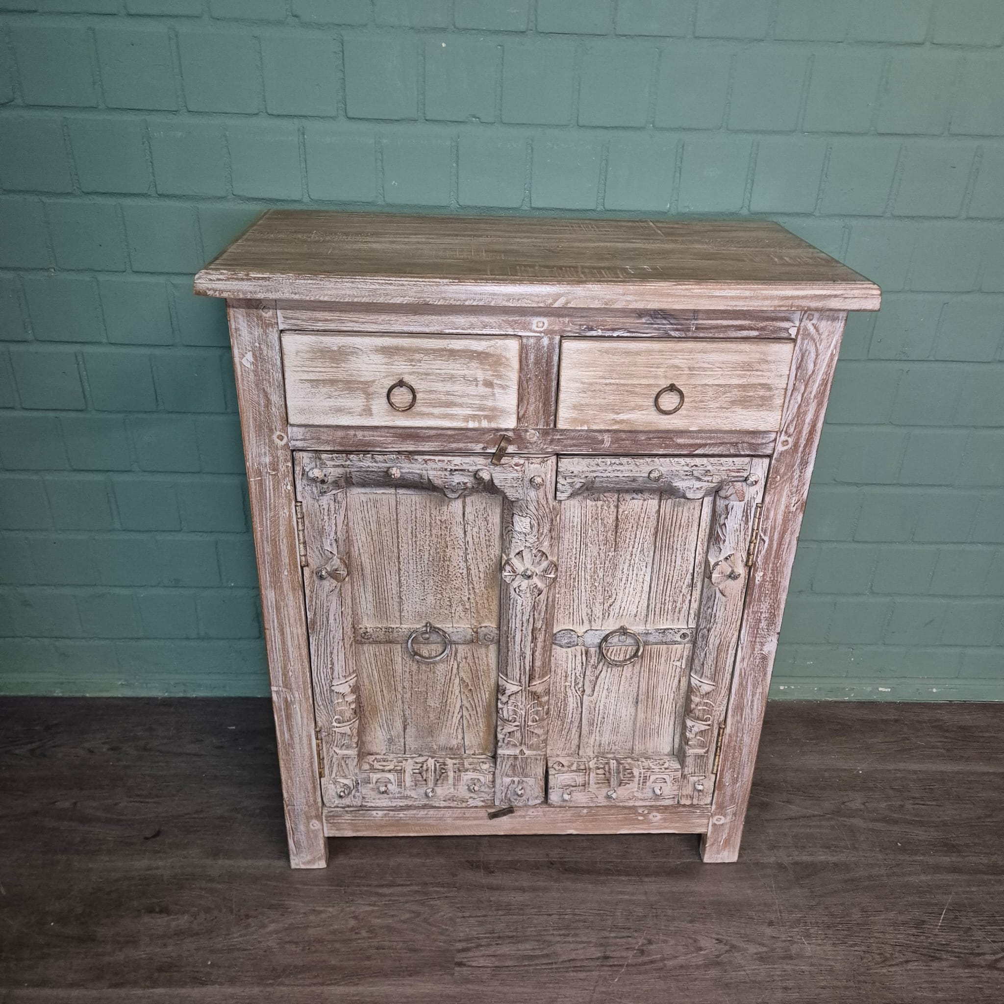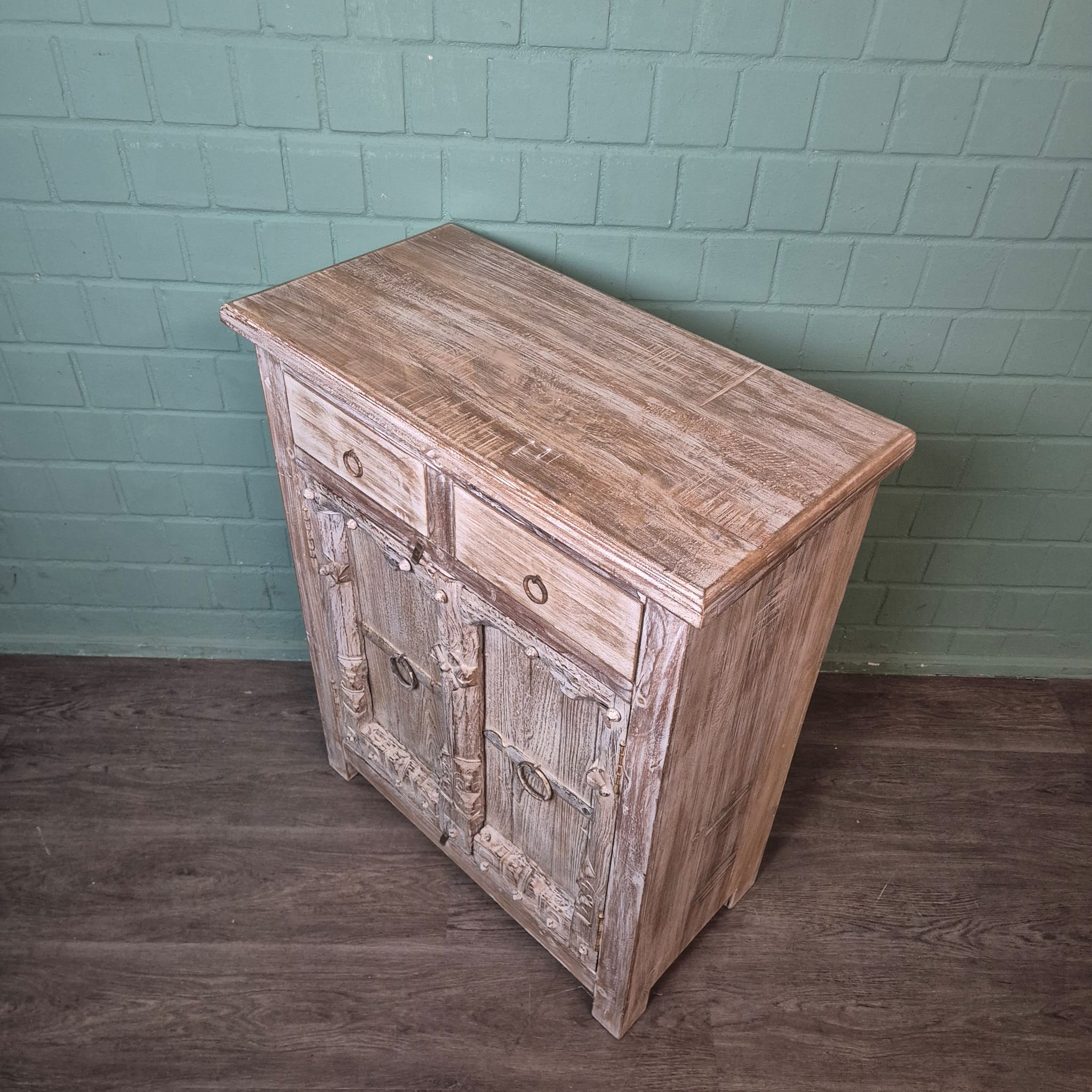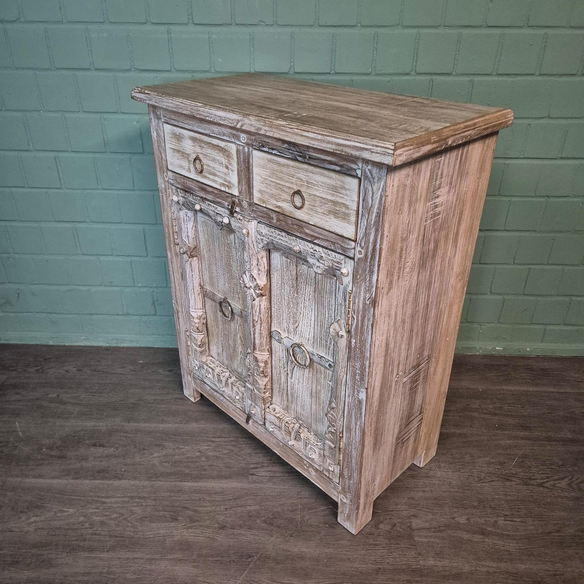 Dieses aufwendig gestaltete Sideboard aus Massivholz (Shabby-Chic Optik) erhält seine besondere Wirkung durch natürliche Unregelmäßigkeiten im Holz. Diese entstehen durch das verwendete Massivholz mit seinen verschiedenen Strukturen, welche diesem Stück einen eigentümlichen Charakter verleihen und es zu einem Unikat machen. Machart und Farbton des Holzes tragen sehr zum optischen Wert dieses Möbels bei, das sowohl dekorative Möglichkeiten als auch genügend Stauraum bietet.