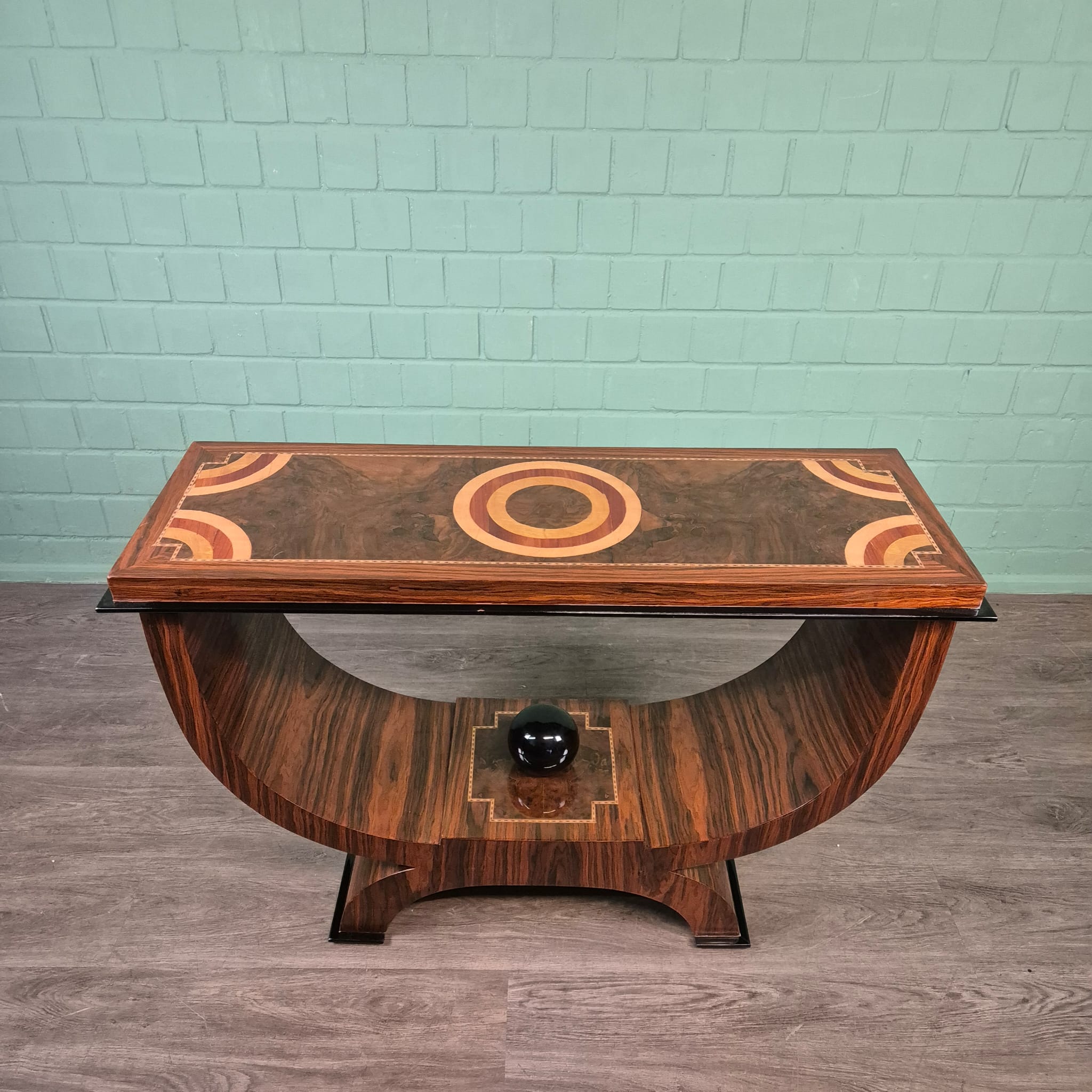 Elegante wandtafel met walnotenfineer en inlegwerk