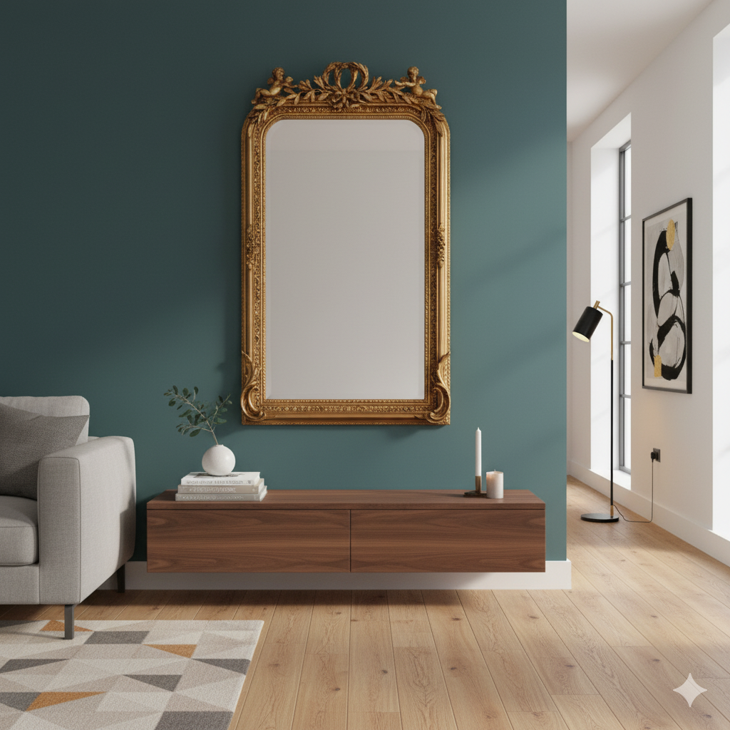 Veelzijdig inzetbaar: Of het nu in de hal, woonkamer, slaapkamer of kleedkamer is – deze spiegel is niet alleen een praktisch element, maar ook een opvallend decoratief stuk dat bewonderende blikken trekt. Door zijn hoogte is hij ideaal als passpiegel, waardoor kleine ruimtes visueel groter lijken. De combinatie van barok design en shabby chic maakt het een veelzijdig meubelstuk dat harmonieus past in klassieke, moderne, eclectische of landelijke interieurs.