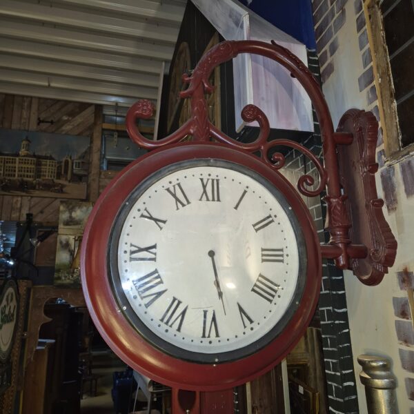 Stijlvolle aluminium stationsklok met dubbelzijdige wijzerplaat. Werkt op batterijen.