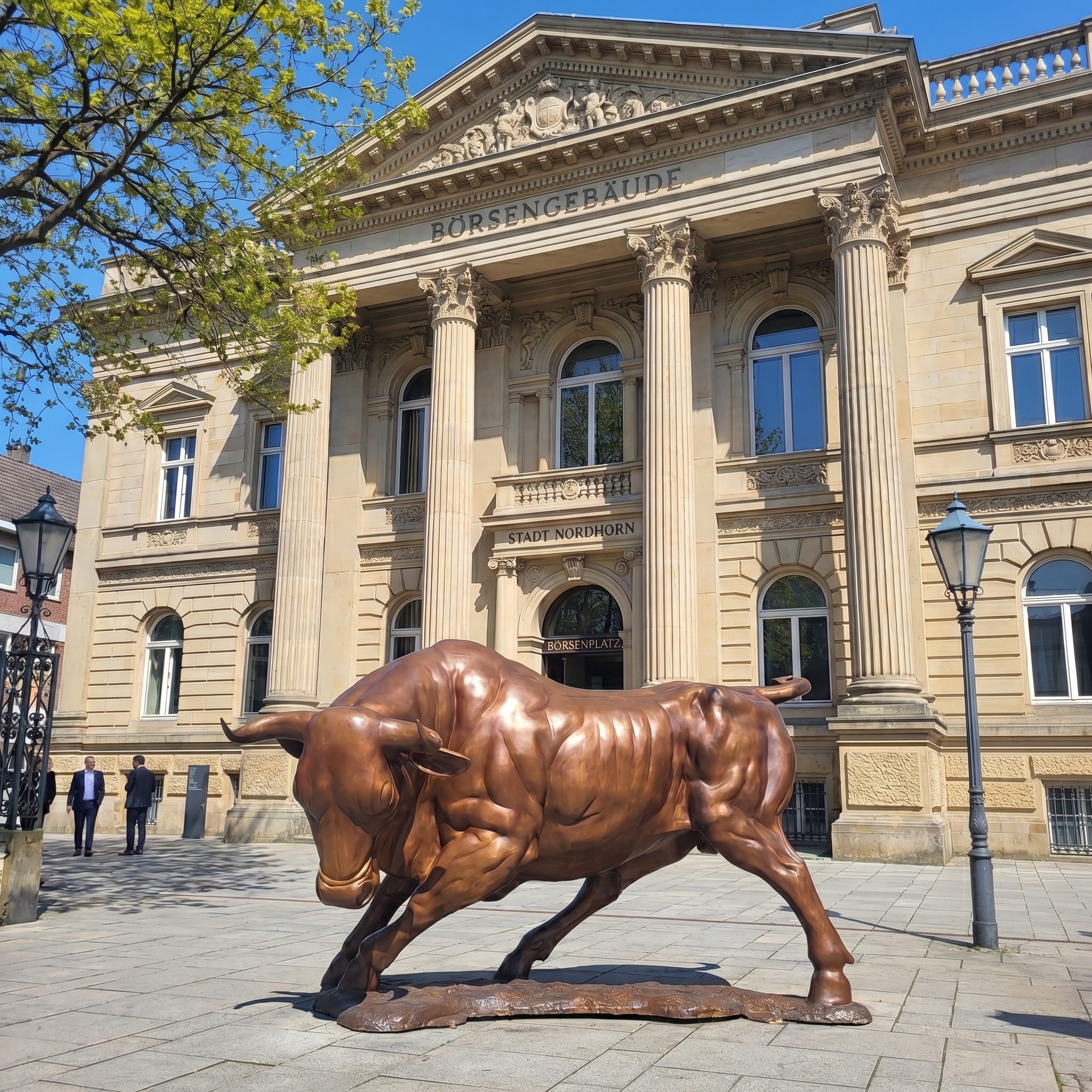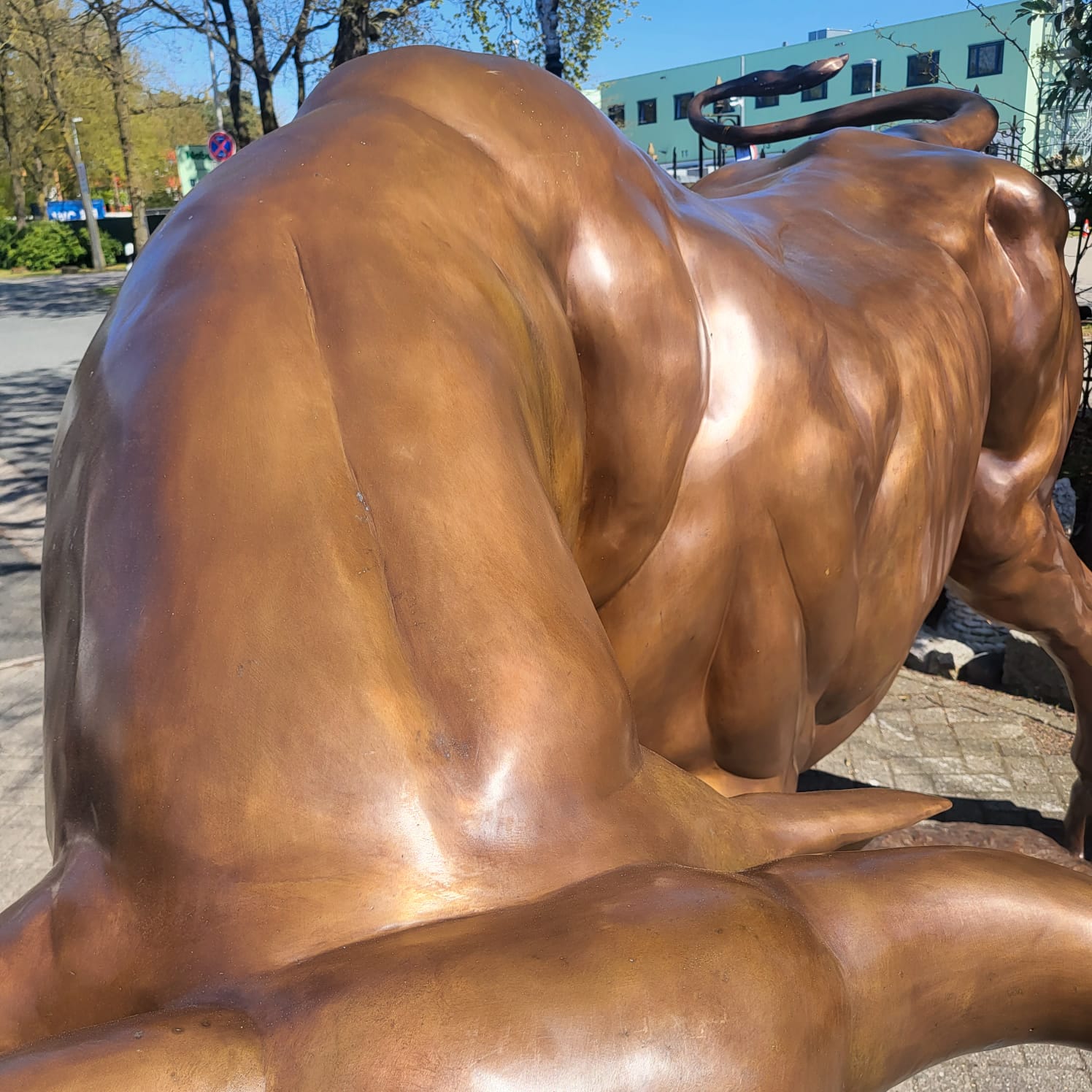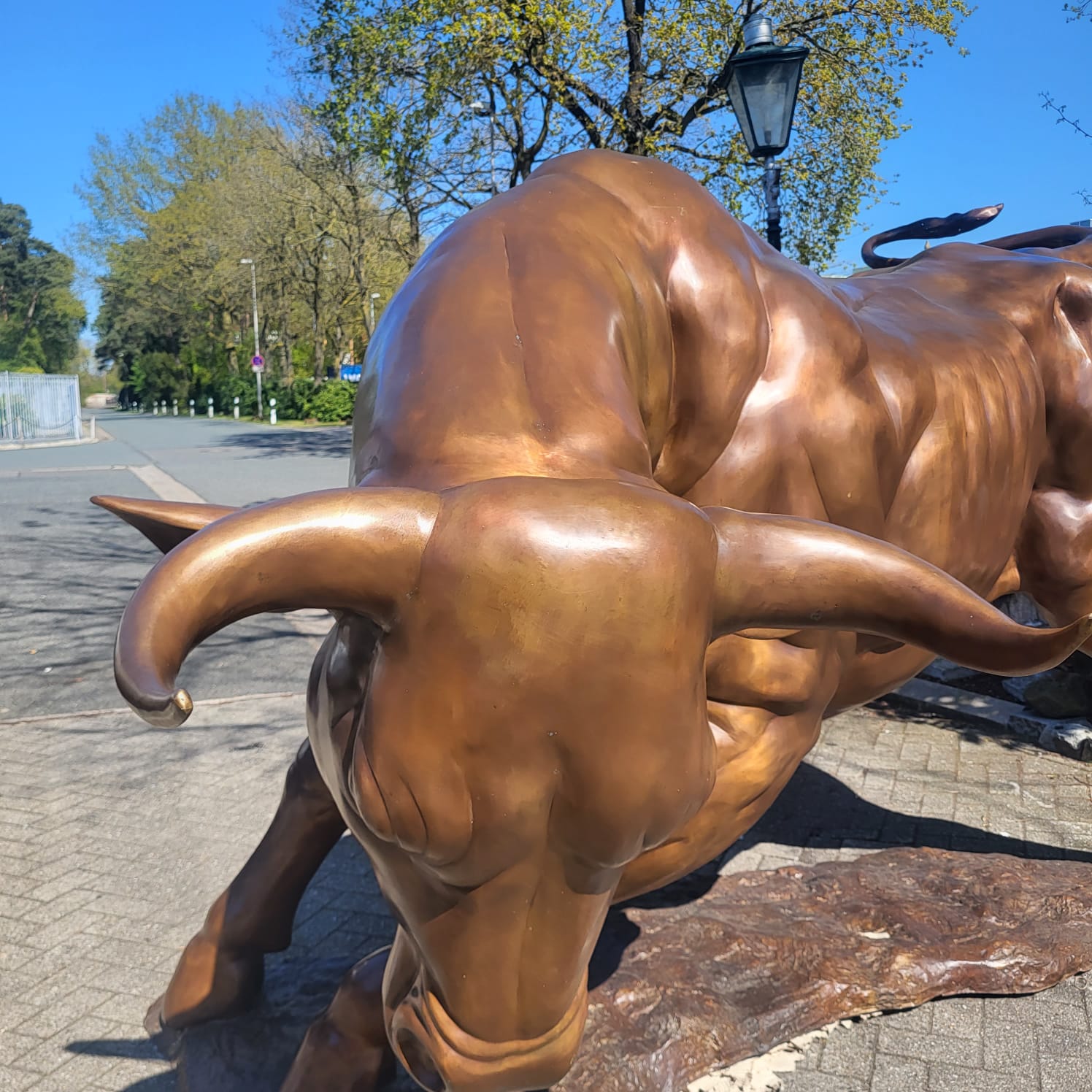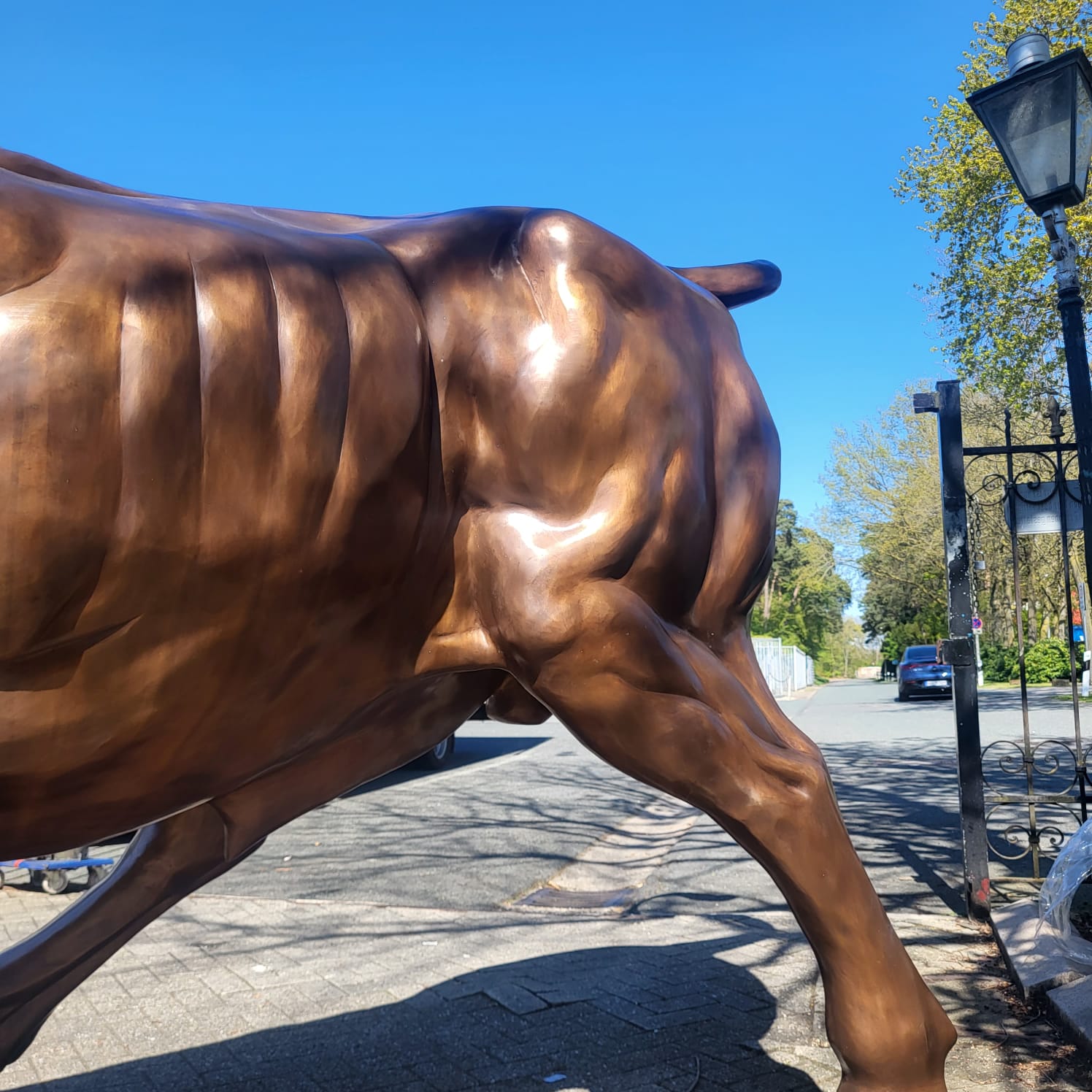 Breng de energie van de financiële wereld en een onmiskenbaar statement naar uw bedrijfspand, landgoed of beeldenpark. Deze imposante replica van de beroemde "Charging Bull" belichaamt dynamiek, optimisme en ontembare kracht als geen ander kunstwerk.