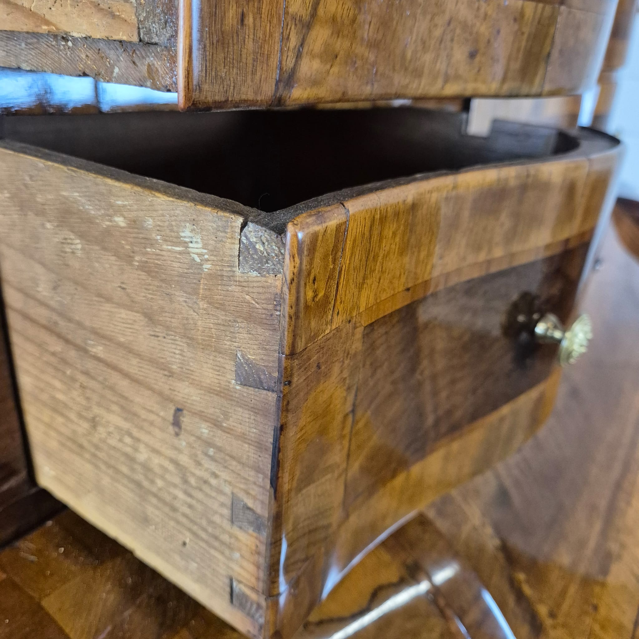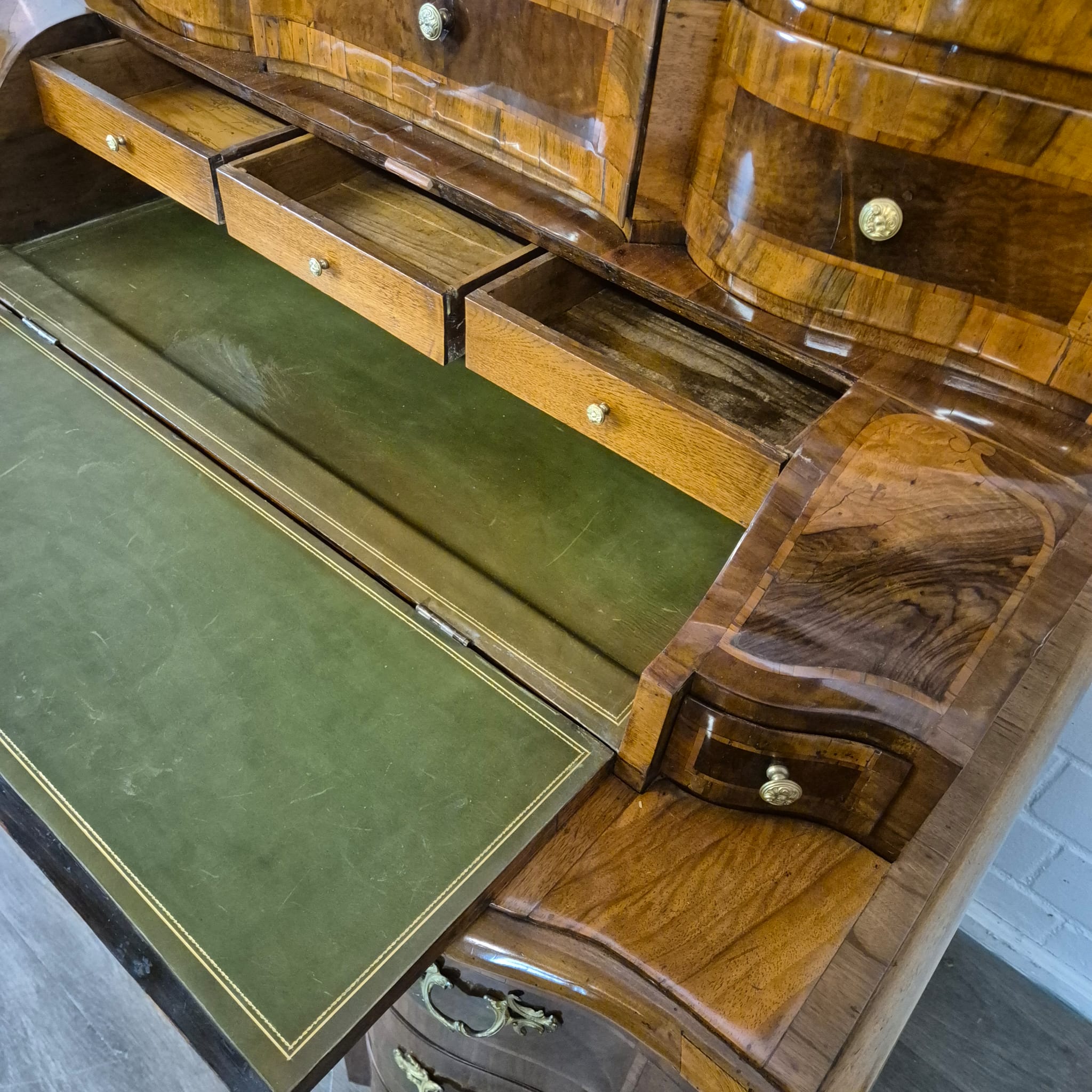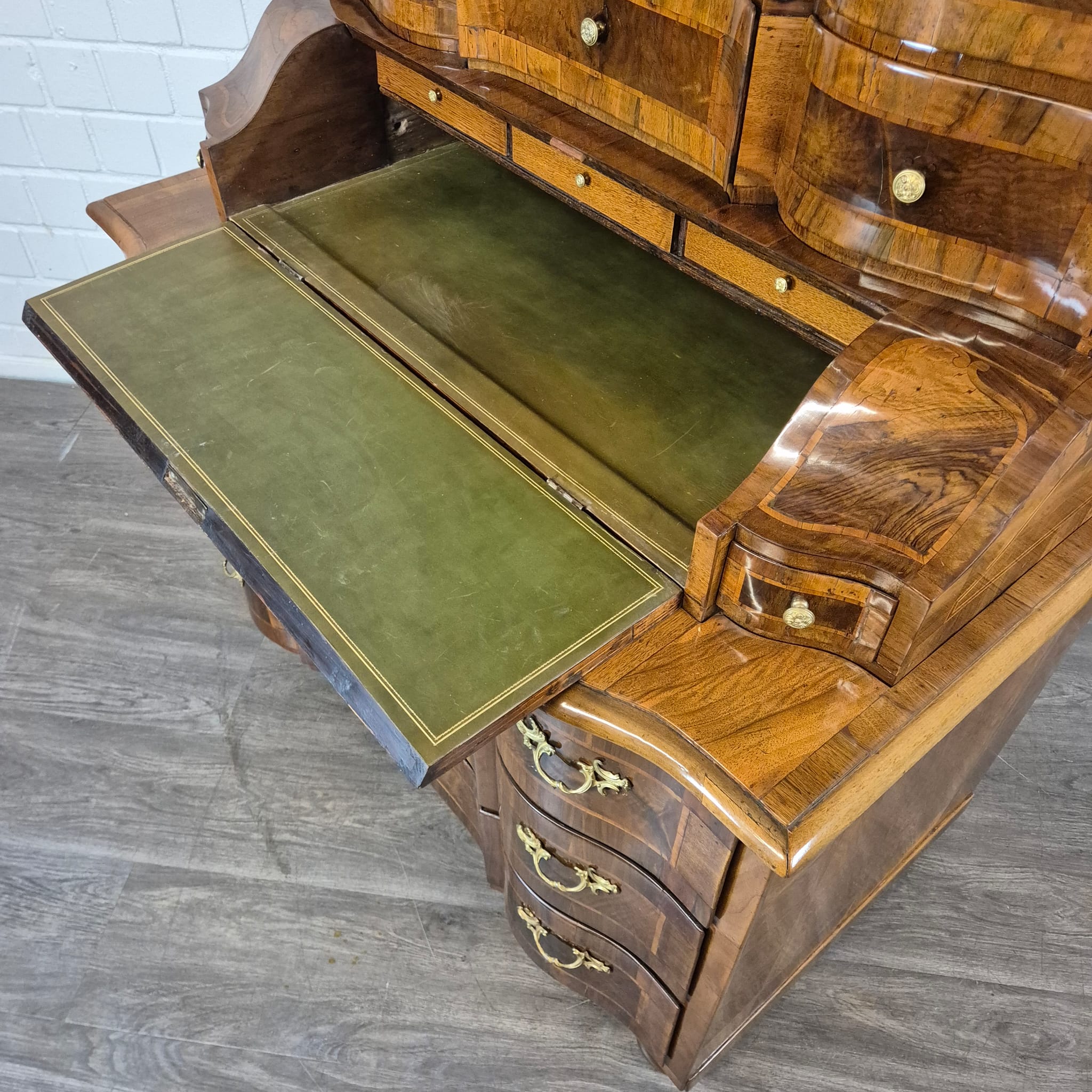 Deze tabernakel secretaire is een uitstekend voorbeeld van het voortreffelijke vakmanschap uit de late barok en rococo. De kenmerkende eigenschappen liggen in de elegant gebogen vorm, het verfijnde inlegwerk, het gebruik van hoogwaardig fineer en de rijkelijk versierde, vergulde bronzen beslagstukken. Het is een formeel meubelstuk dat zowel functioneel (schrijven, opbergen) als een kunstwerk op zich is.