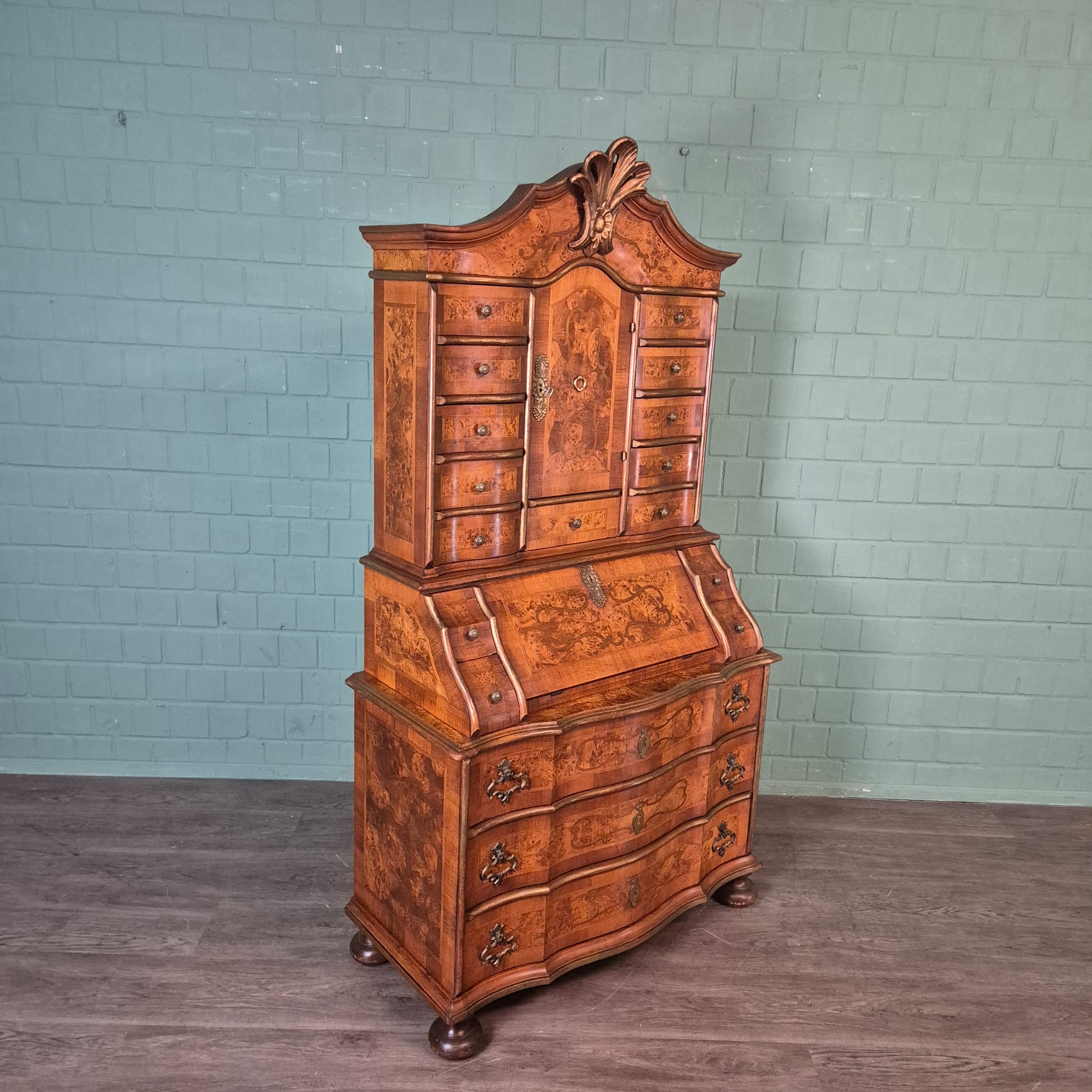 Hoogwaardige neo-barok tabernakel secretaire noten gefineerd en gewaxt uit ca. 1970. De secretaire is in een zeer goede staat en heeft minimale gebruikssporen.