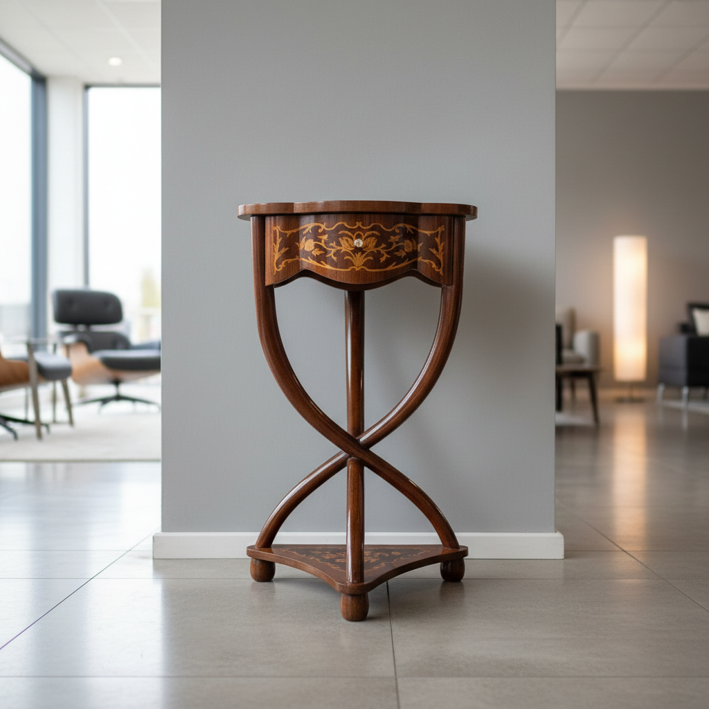 Exclusieve bijzettafel in barokstijl – walnoot met verfijnde inleg