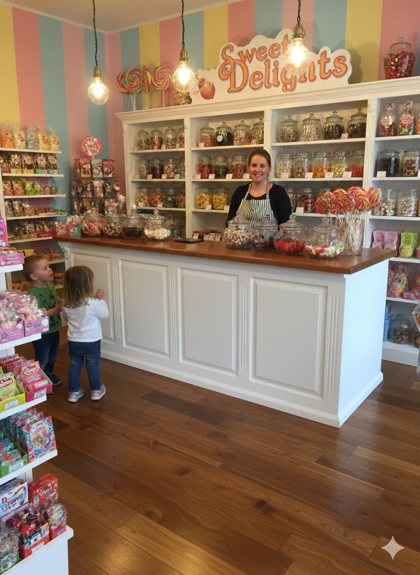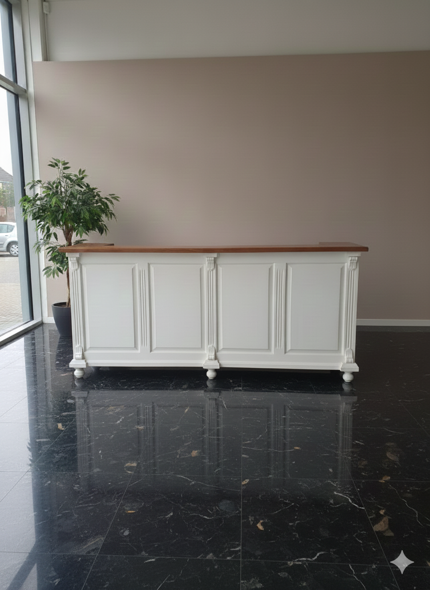 Stijlvolle toonbank van massief hout (naaldhout) en MDF in nostalgische uitstraling.