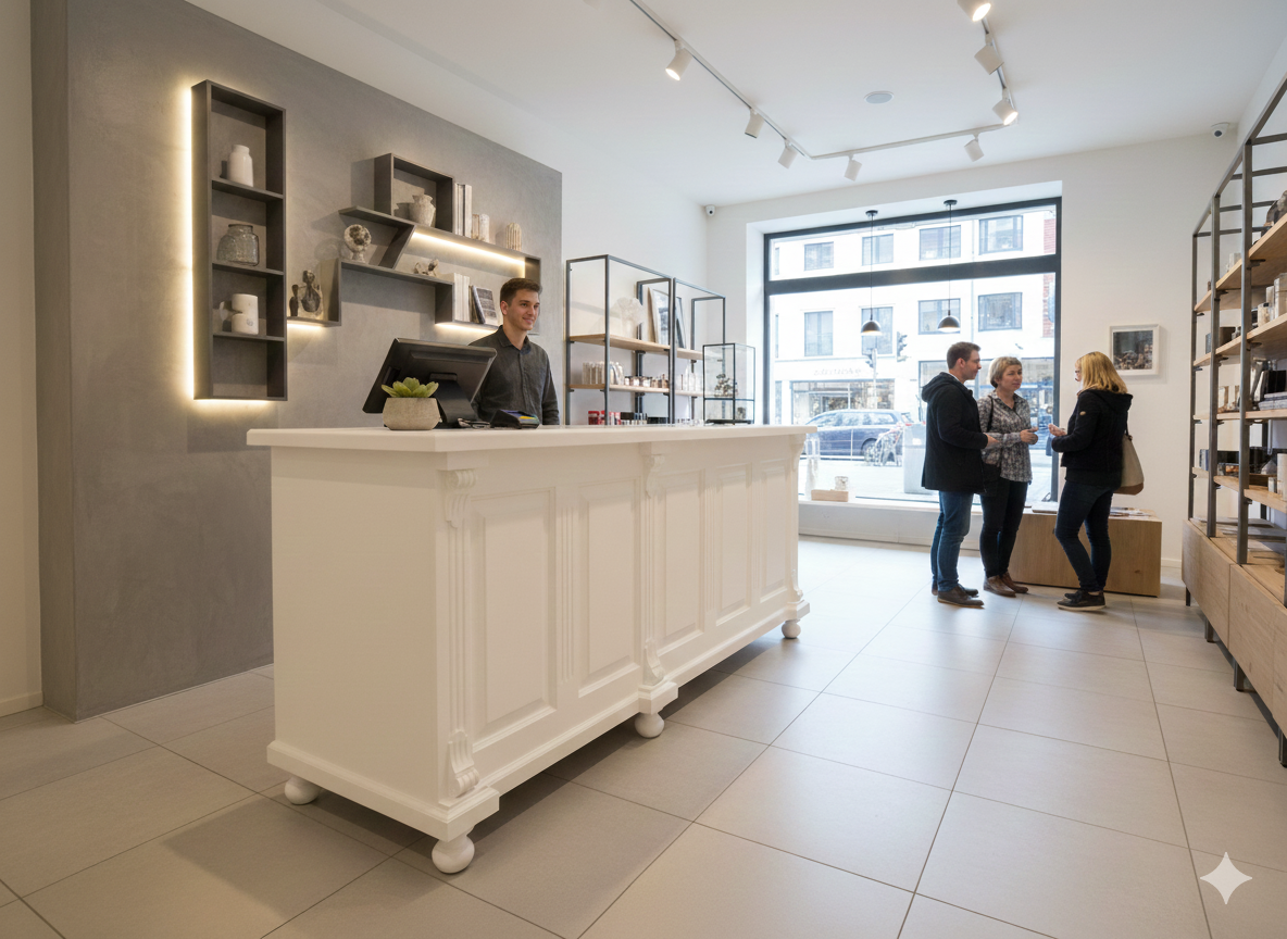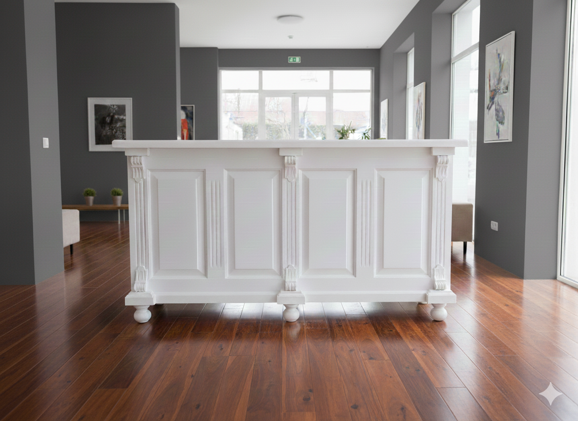 Toonbank model Janina van massief grenen. De toonbank wordt compleet geleverd en is direct gereed voor gebruik.