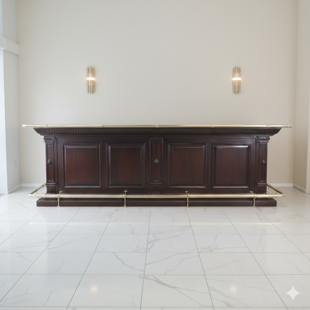 De toog model "Bella" van massief mahonie maakt indruk door zijn stijlvolle elegantie en hoogwaardige afwerking. De combinatie van een nostalgische look en moderne functionaliteit is geschikt voor alle winkelinrichtingen en vele andere toepassingsgebieden. De toonbank wordt volledig gemonteerd geleverd en is dus direct klaar voor gebruik.