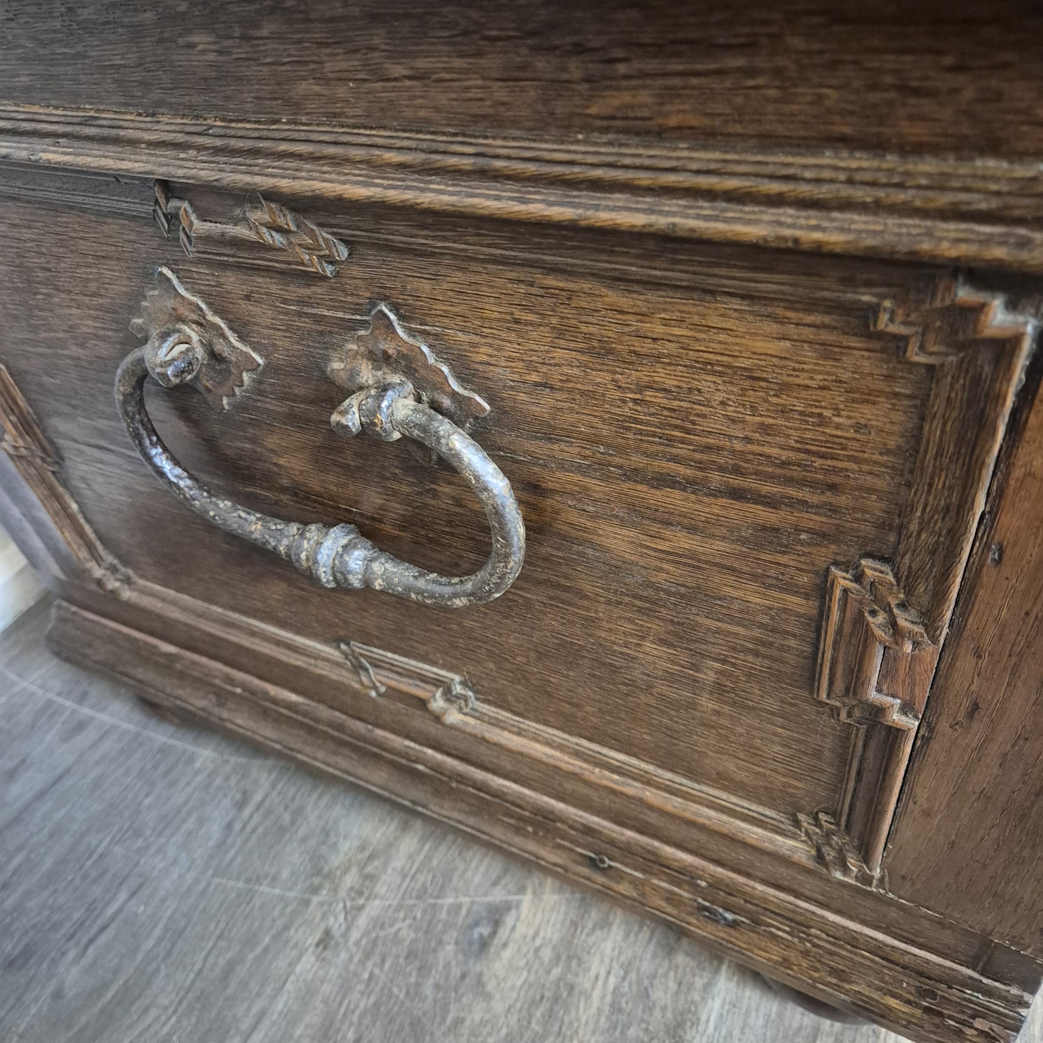 Gerestaureerde barok kist gemaakt van massief eiken uit ca. 1770. De kist is in een zeer goede staat en heeft minimale gebruikssporen.