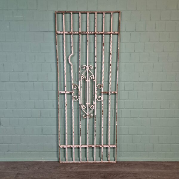 Antiek en gebruikt: Het hekwerk is gebruikt en antiek, wat het zijn authentieke charme geeft. Het patina dat zich in de loop van de decennia heeft ontwikkeld en eventuele kleine oneffenheden vertellen het verhaal en zorgen voor een unieke levendigheid. De groene kleur, die nog gedeeltelijk zichtbaar is, onderstreept het historische karakter.