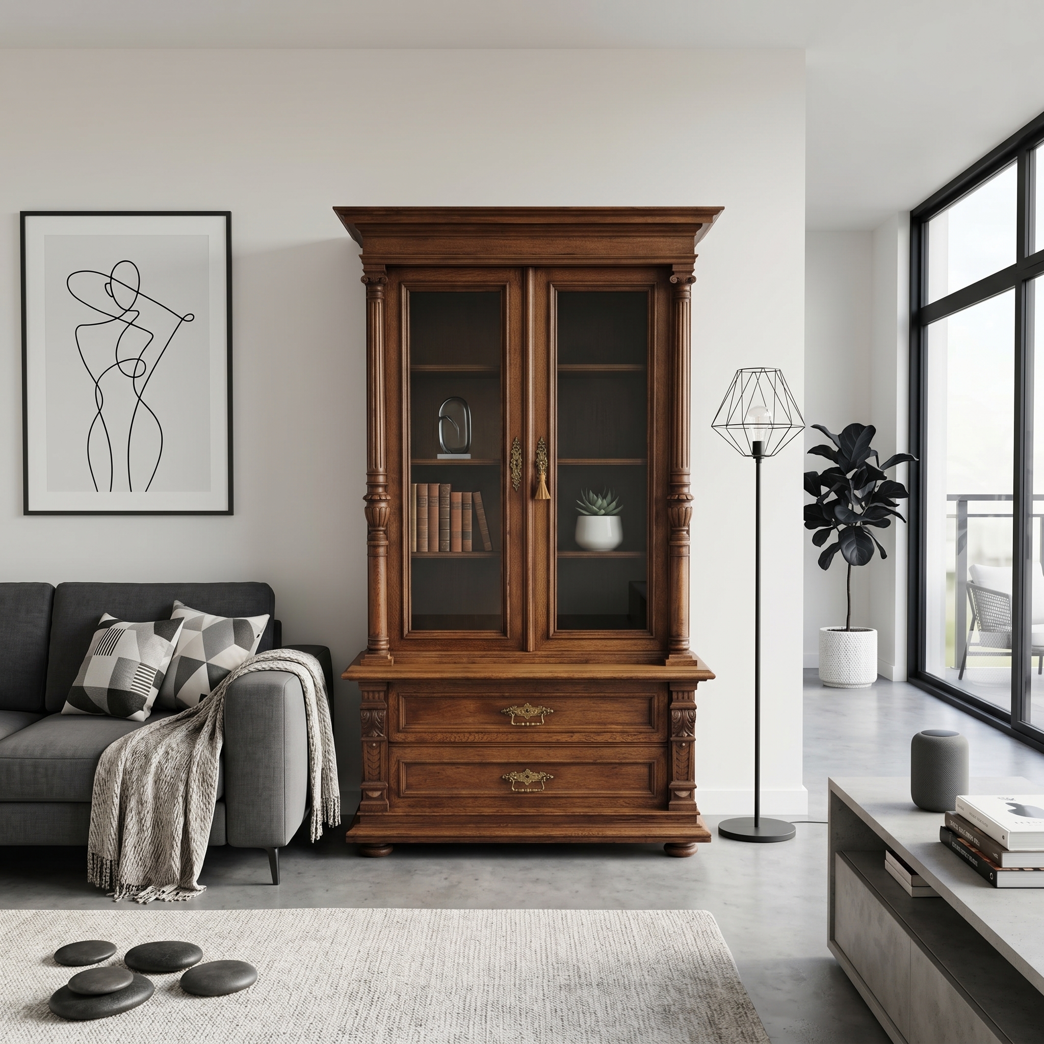 Vitrine Boekenkast Gründerzeit 1880 Eiken
