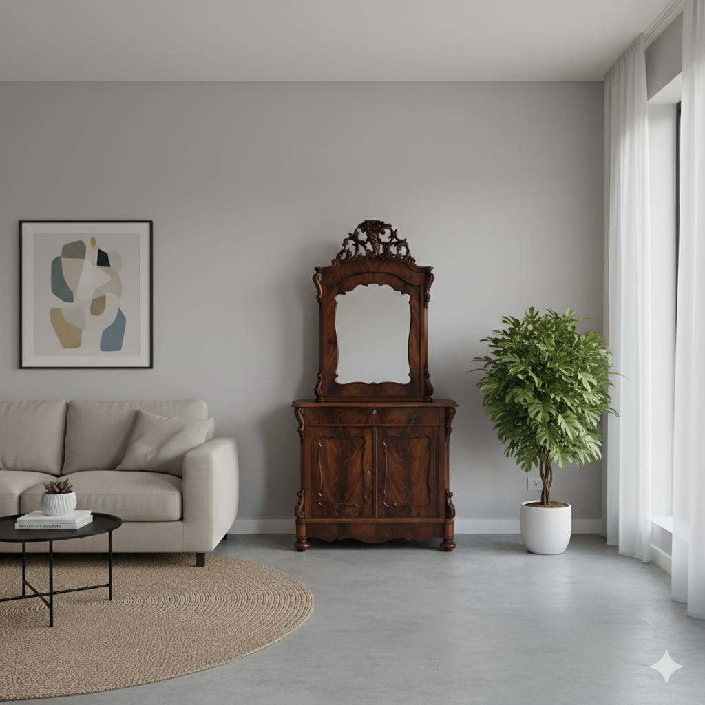 Vitrine Bonheur Biedermeier 1850 Mahonie