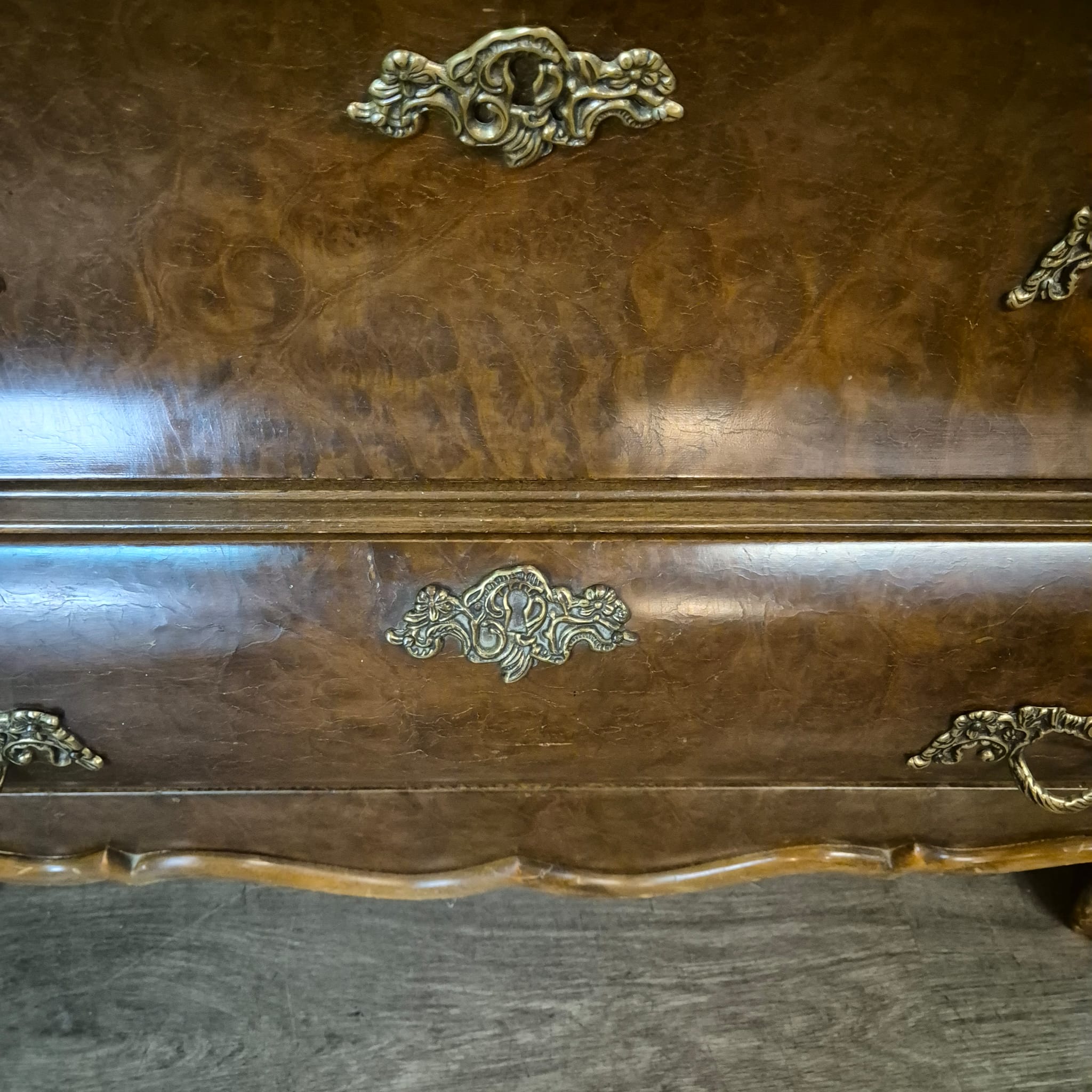 Gerestaureerde neo-barok kast noten gefineerd uit ca. 1970. De kast is in een goede staat en heeft lichte gebruikssporen.