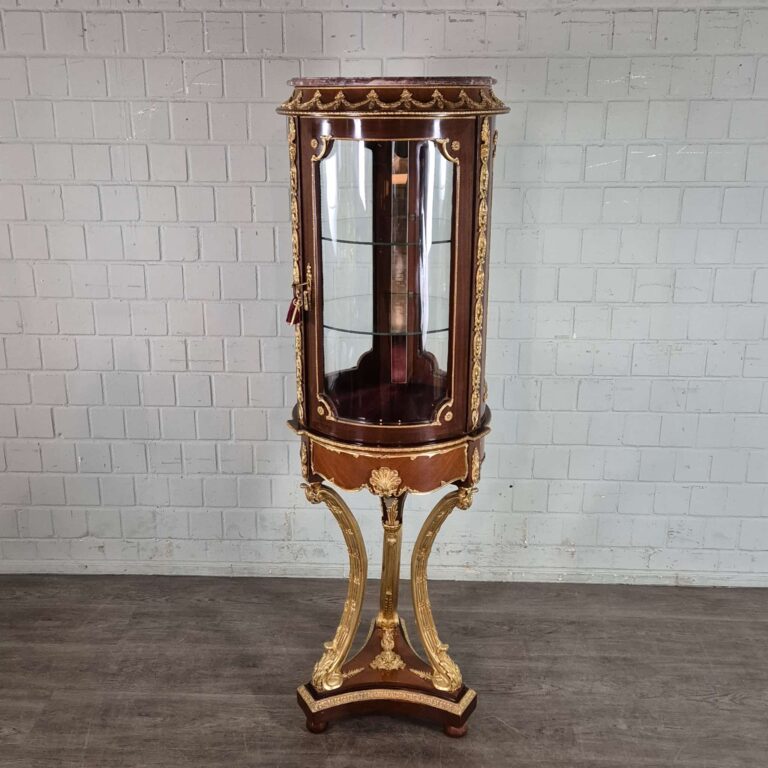 Tijdloze glans: deze prachtige vitrine van mahoniefineer is een waar meesterwerk van de meubelmakerij. De uitvoerig vervaardigde bronzen applicaties en het gepolijste marmeren blad geven de vitrine een luxe uitstraling. De achter glas beschermde compartimenten bieden voldoende ruimte voor uw waardevolle verzamelobjecten.