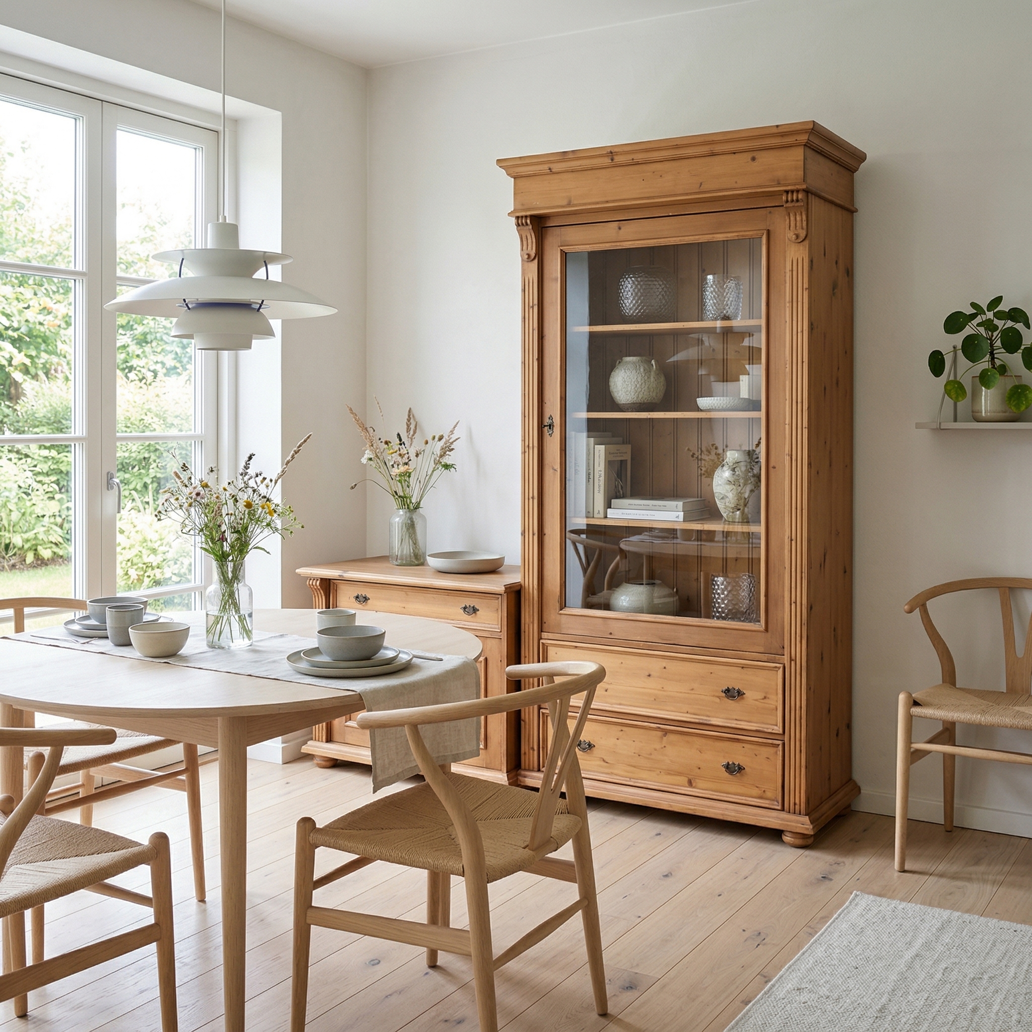 Vitrine met Sideboard Kast 1,77 m Grenen