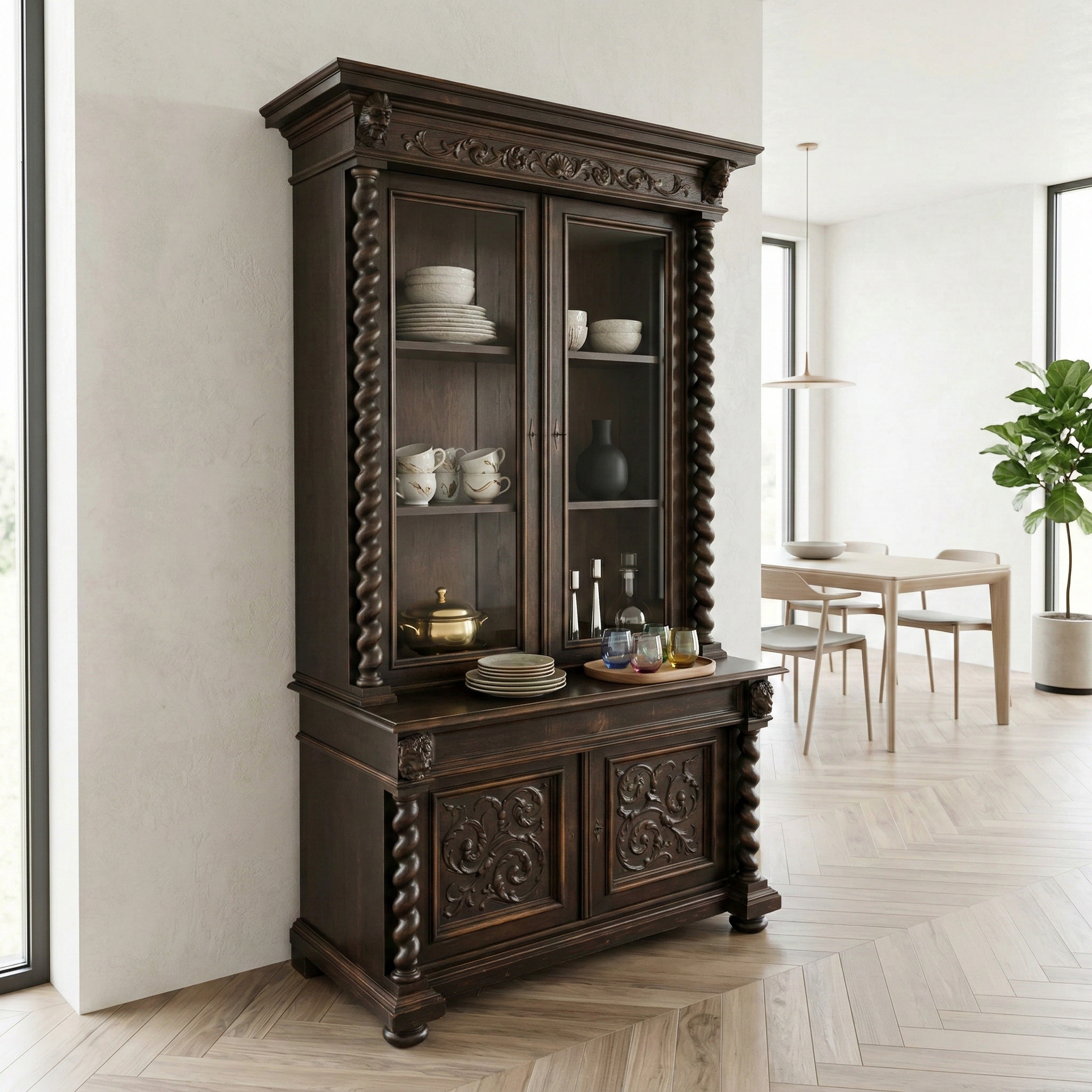 Vitrine Servieskast Gründerzeit 1880 Eiken