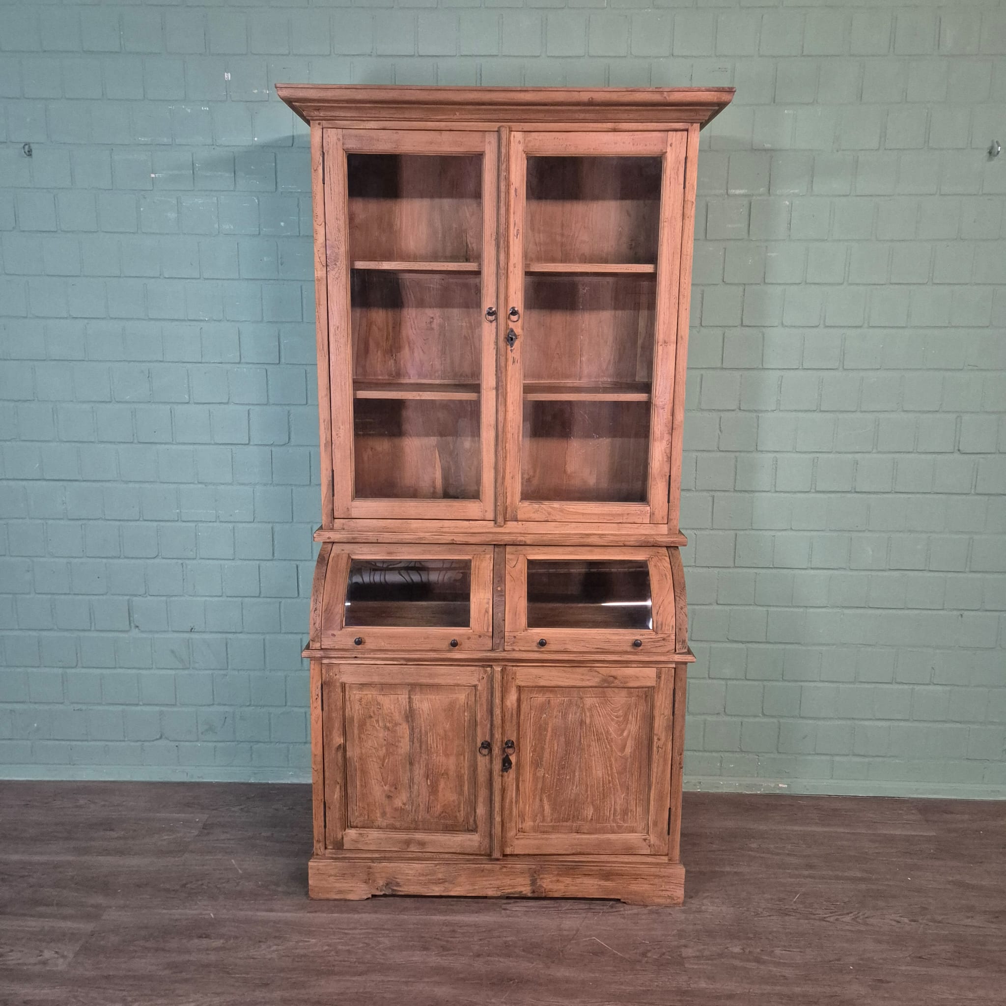 Stijlvolle vitrinekast gemaakt van massief gerecyceld teak. Demontabel (2-delig).
