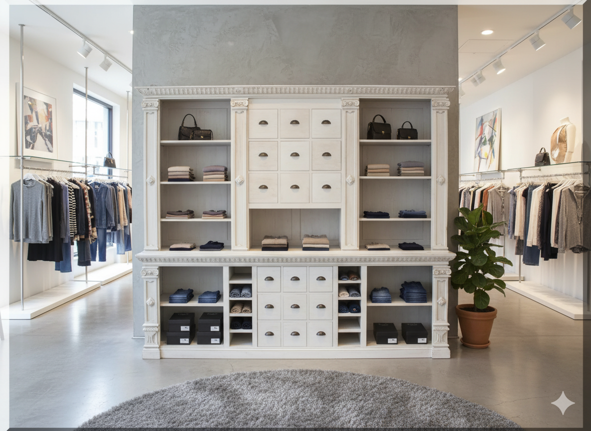 Deze massief houten winkelkast maakt indruk met zijn stijlvolle elegantie en uitgebreide afwerking. De combinatie van nostalgische optiek en moderne functionaliteit is geschikt voor alle winkelinrichtingen en vele andere toepassingen. De kast wordt volledig gemonteerd geleverd en is klaar voor gebruik. Dit product kan worden aangepast aan uw behoeften. Vorm, kleur, afmetingen en eigenschappen kunnen met dit artikel aan uw wensen worden aangepast. Wij doen u graag een vrijblijvende offerte voor het aangeboden model volgens uw ideeën. Levertijd ca. 18 weken. Dit artikel is op maat en in gewenste kleur leverbaar.