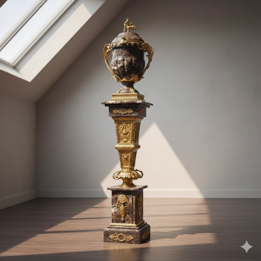 Zuilen met vaas gemaakt van marmer en brons. Demontabel (2-delig). Setprijs 2999 euro inkl. levering.